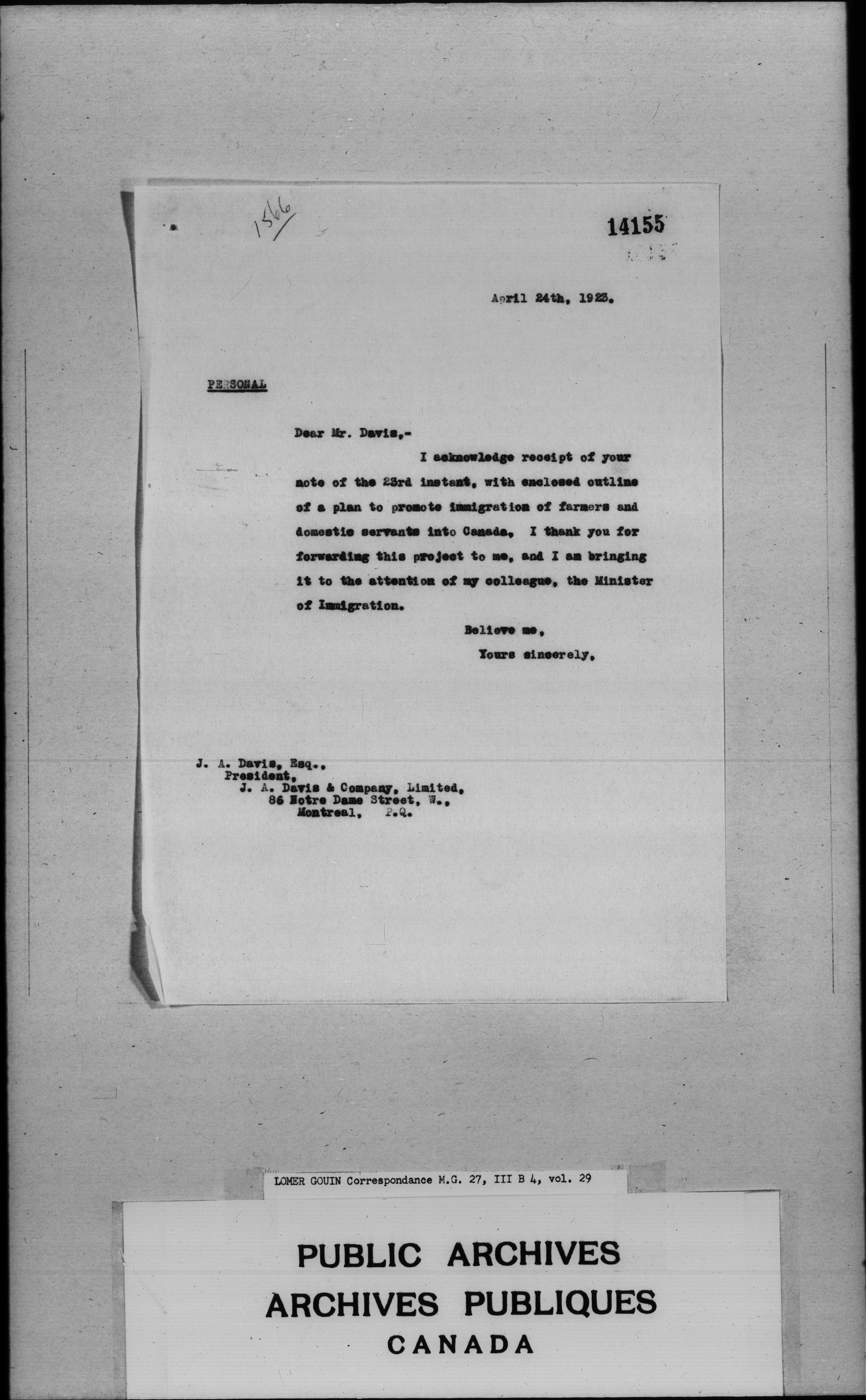 Sir Lomer Gouin : Correspondence 1922-1929 - 2346