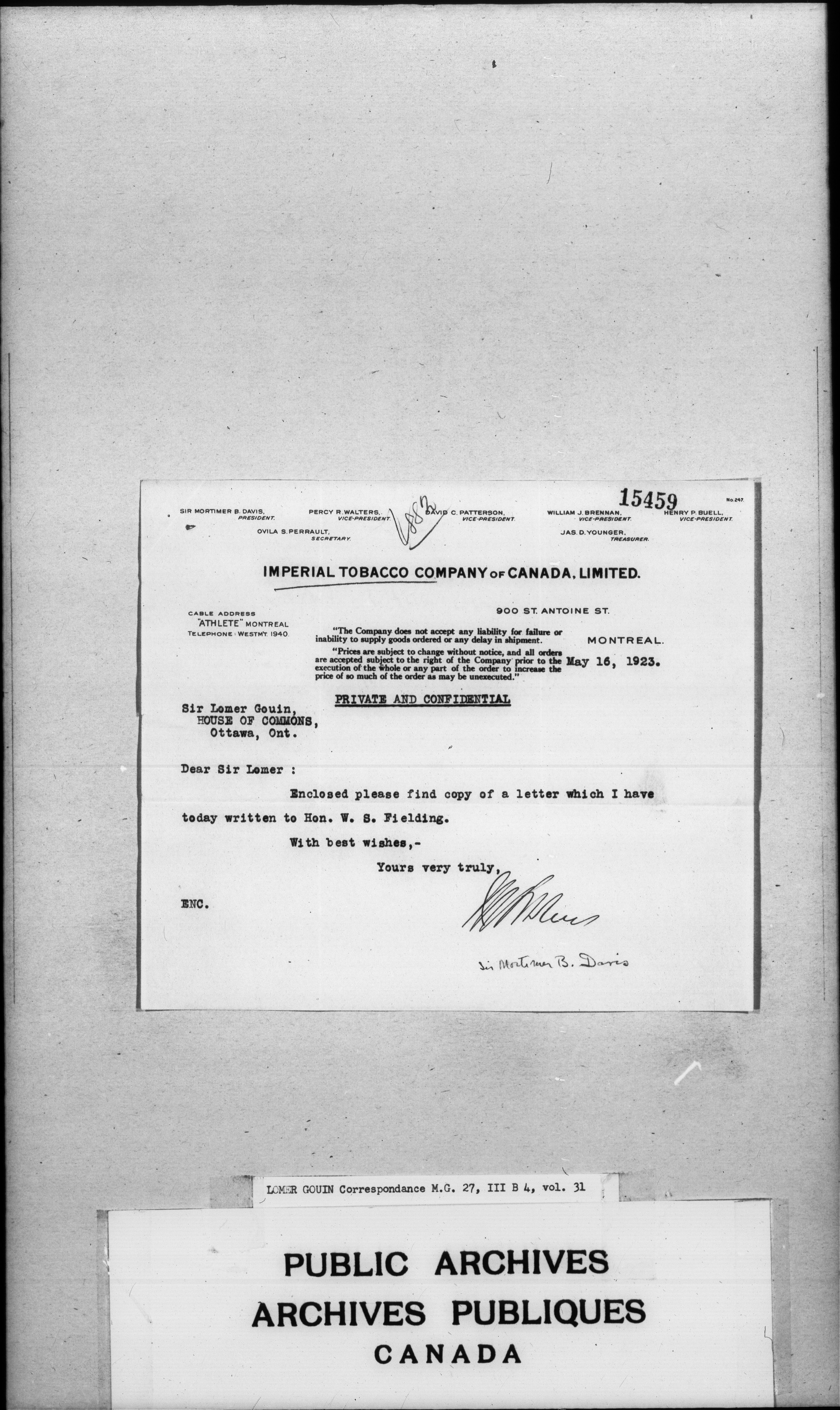 Sir Lomer Gouin : Correspondence 1922-1930 - 2347