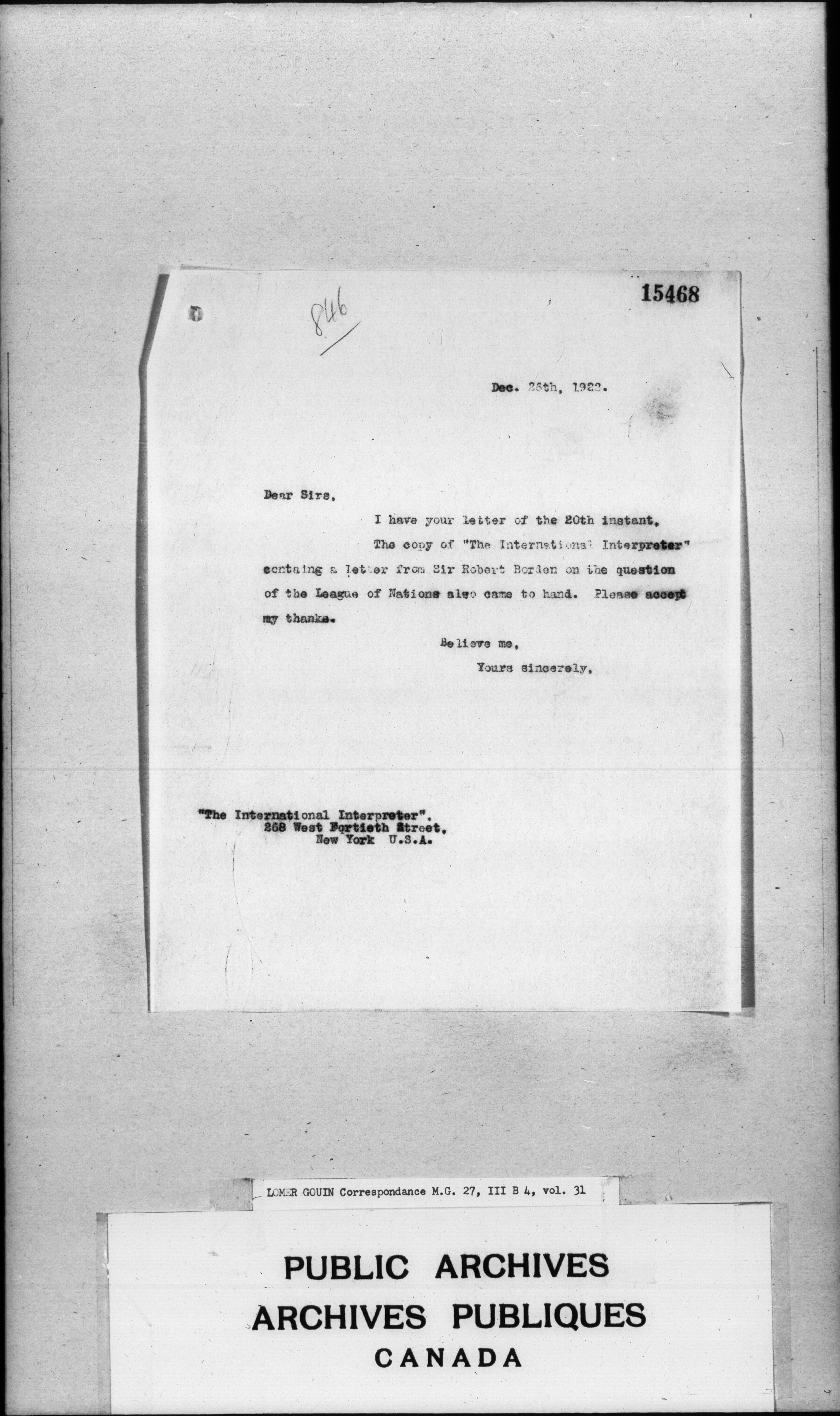 Sir Lomer Gouin : Correspondence 1922-1930 - 2347