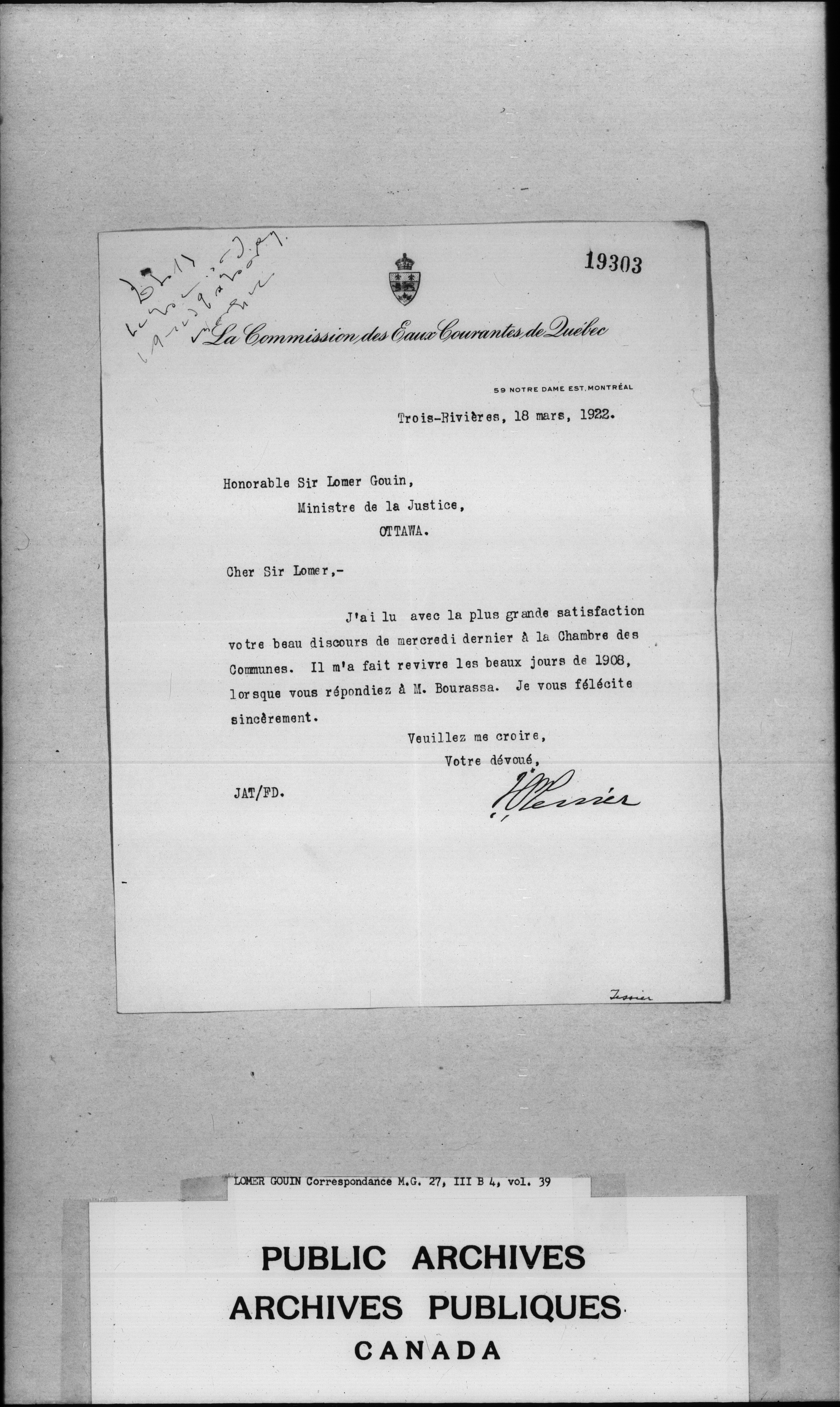 Sir Lomer Gouin : Correspondence 1922-1933 - 2350