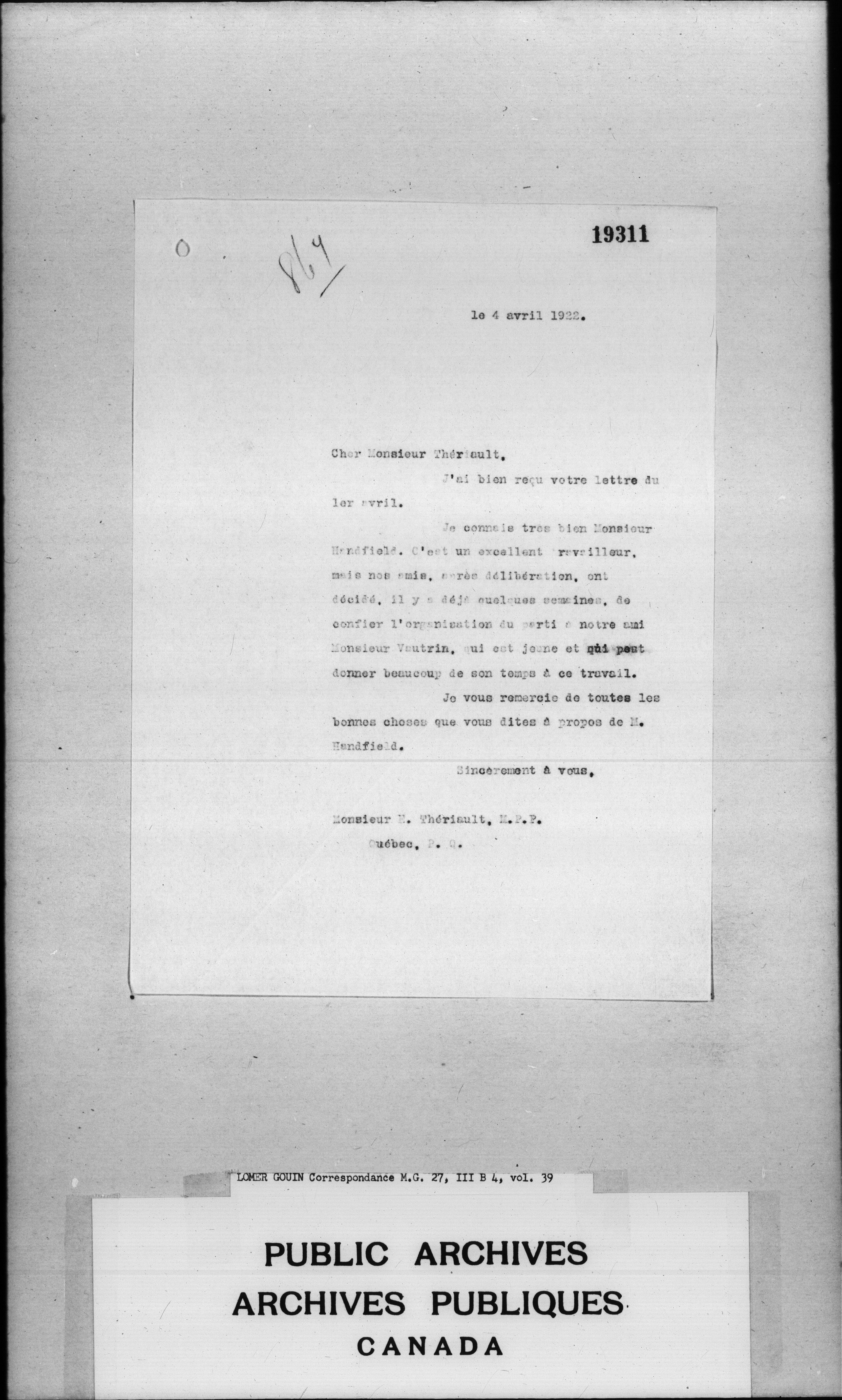 Sir Lomer Gouin : Correspondence 1922-1933 - 2350