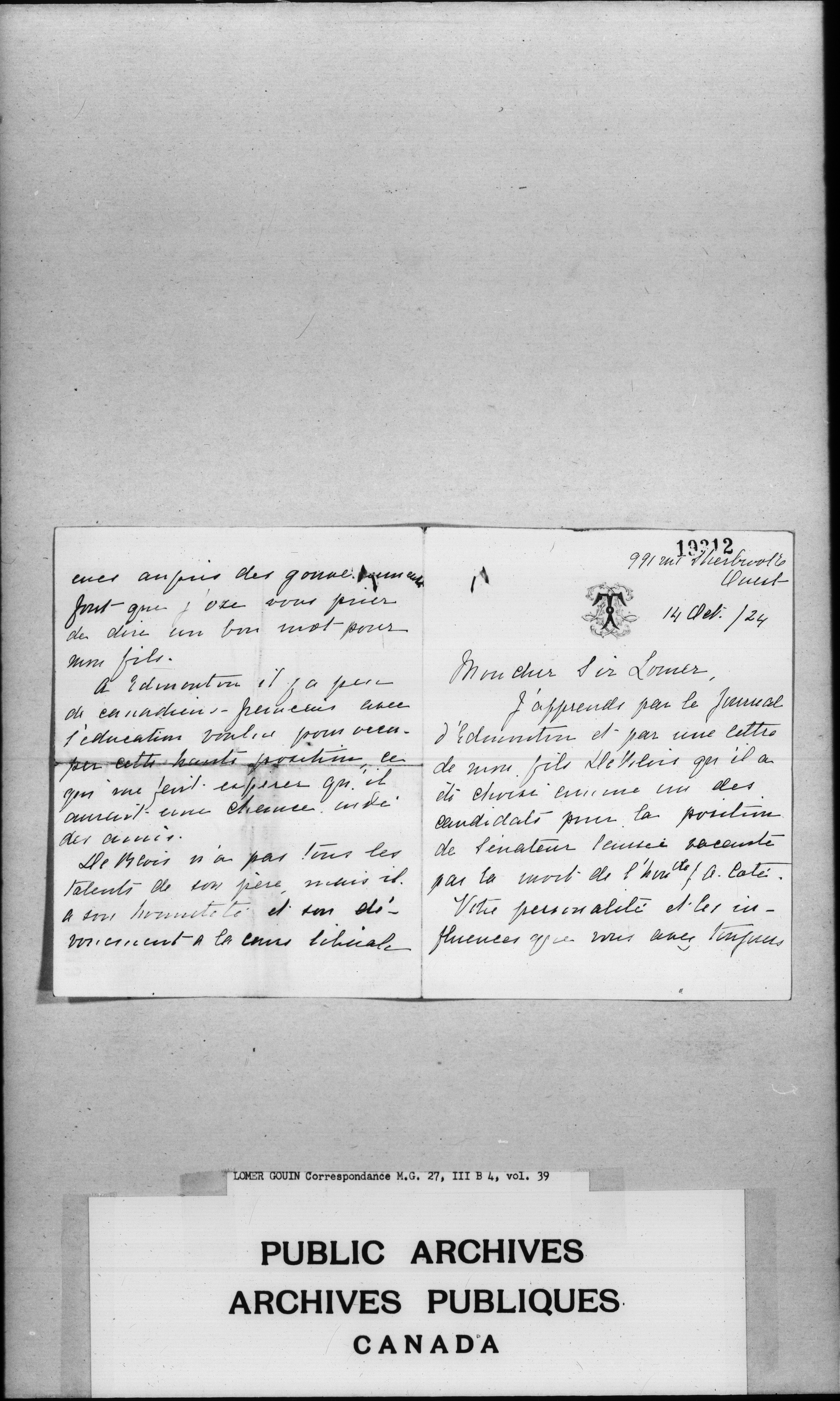Sir Lomer Gouin : Correspondence 1922-1933 - 2350