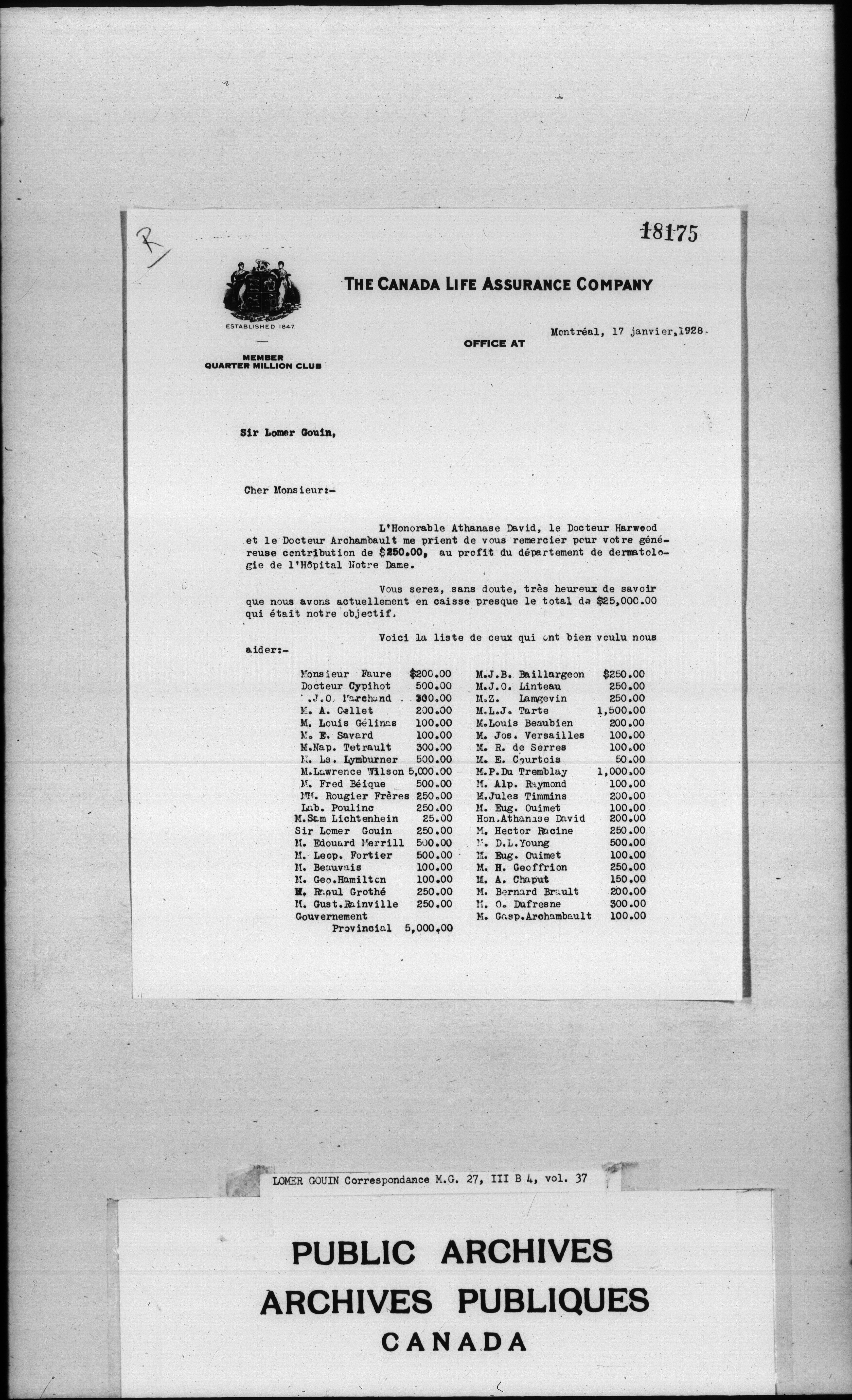 Sir Lomer Gouin : Correspondence 1922-1933 - 2350