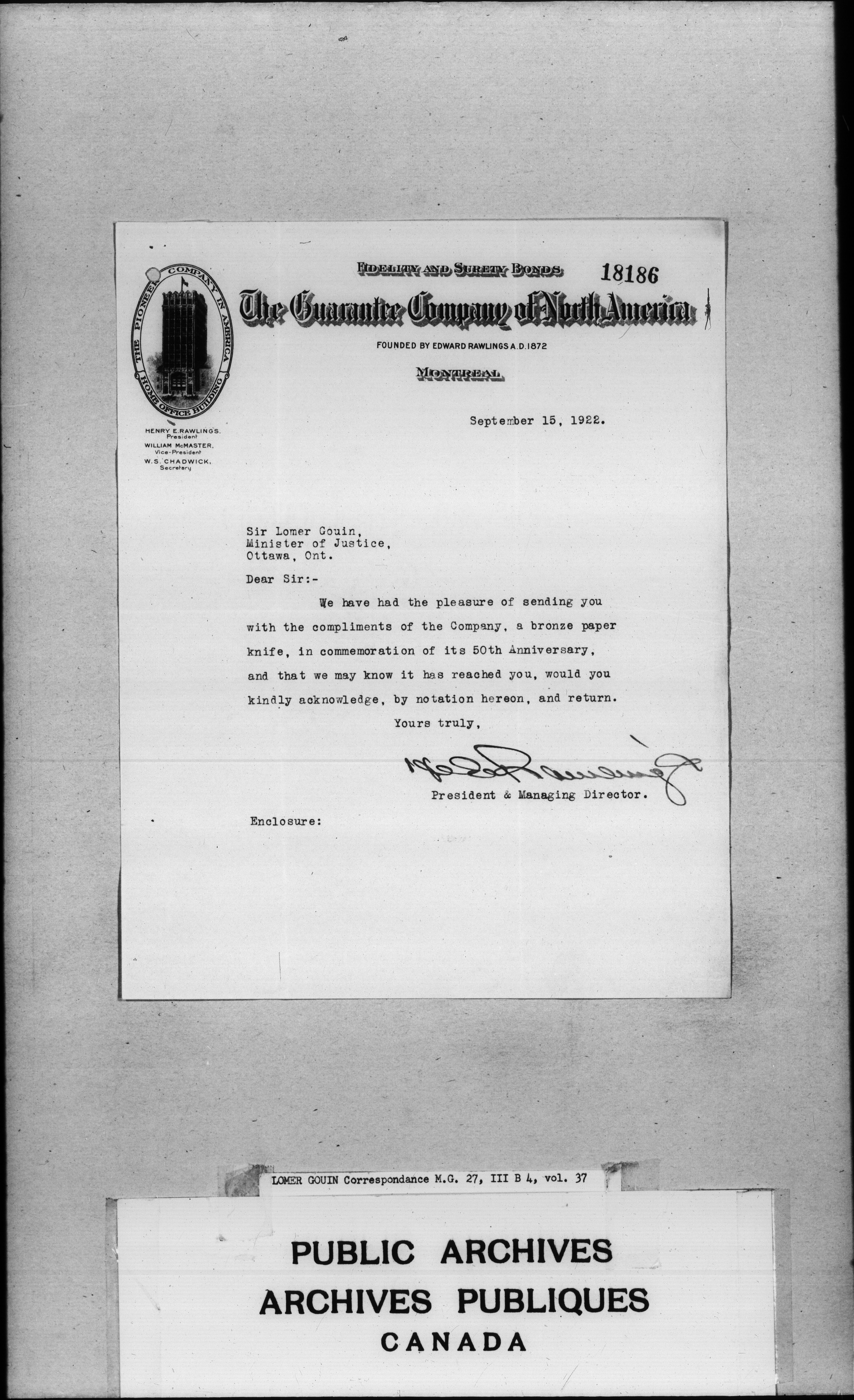 Sir Lomer Gouin : Correspondence 1922-1933 - 2350