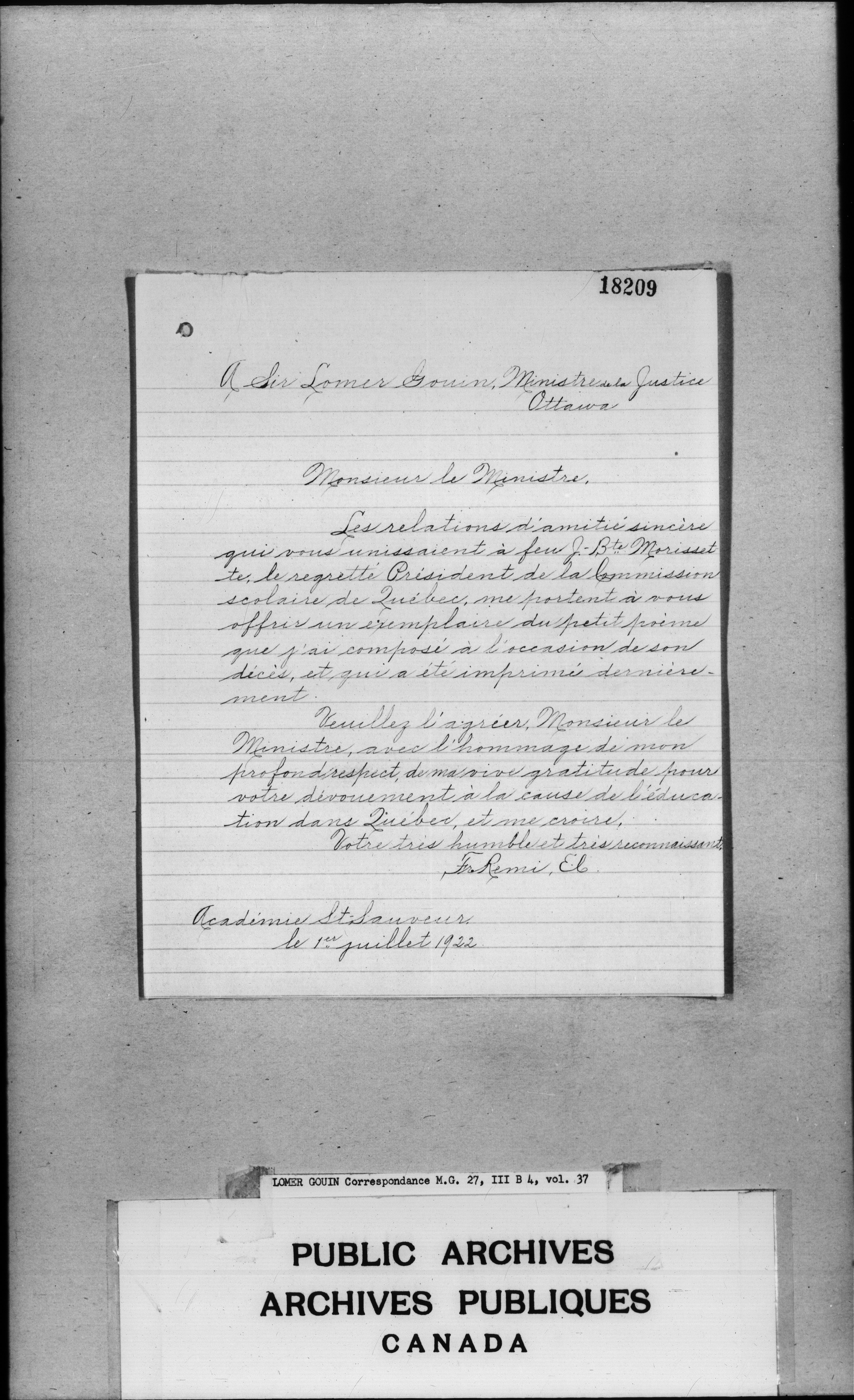 Sir Lomer Gouin : Correspondence 1922-1933 - 2350