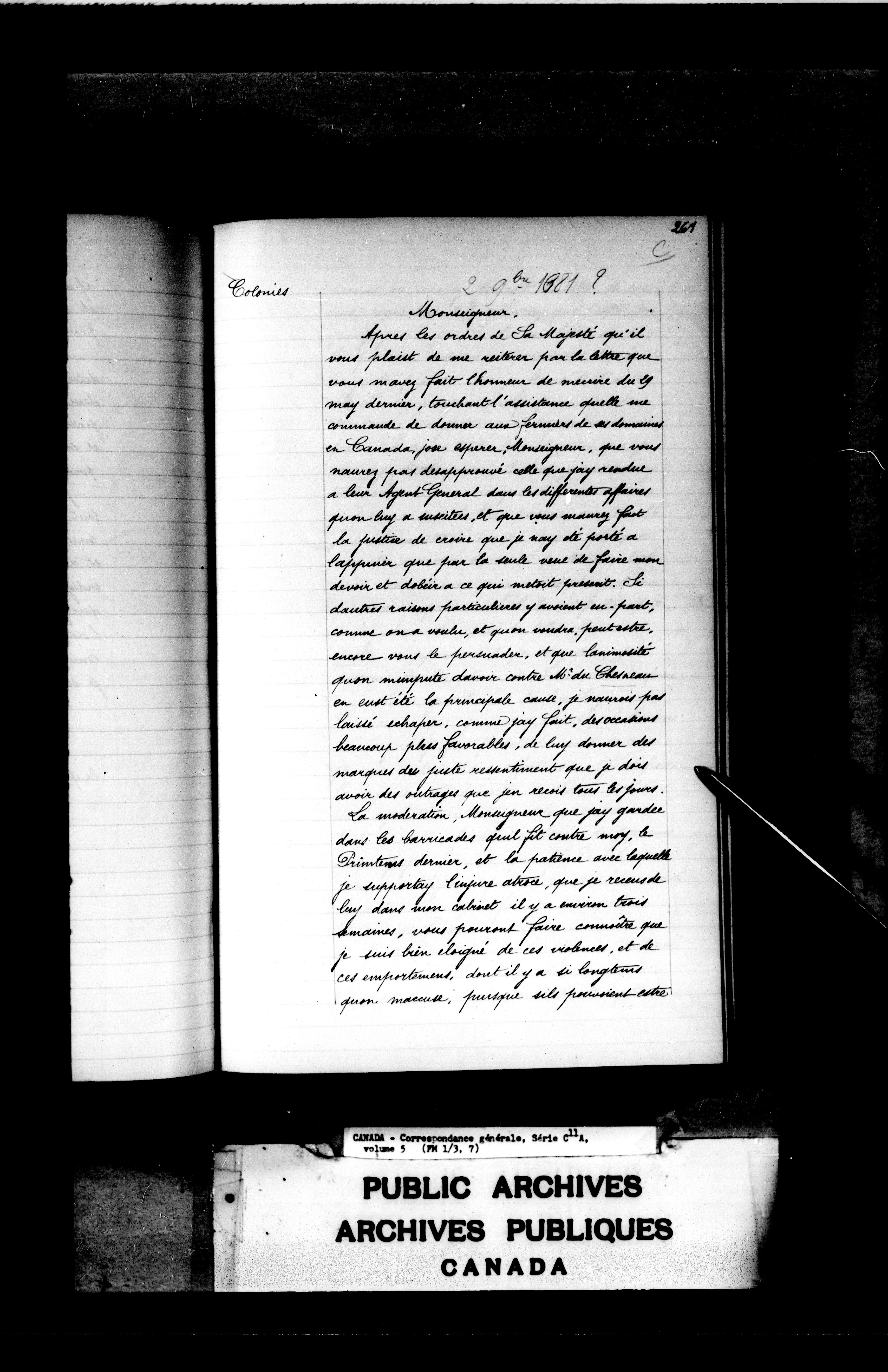 France fonds des Colonies : Série C11A. Correspondance générale; Canada : C-2375