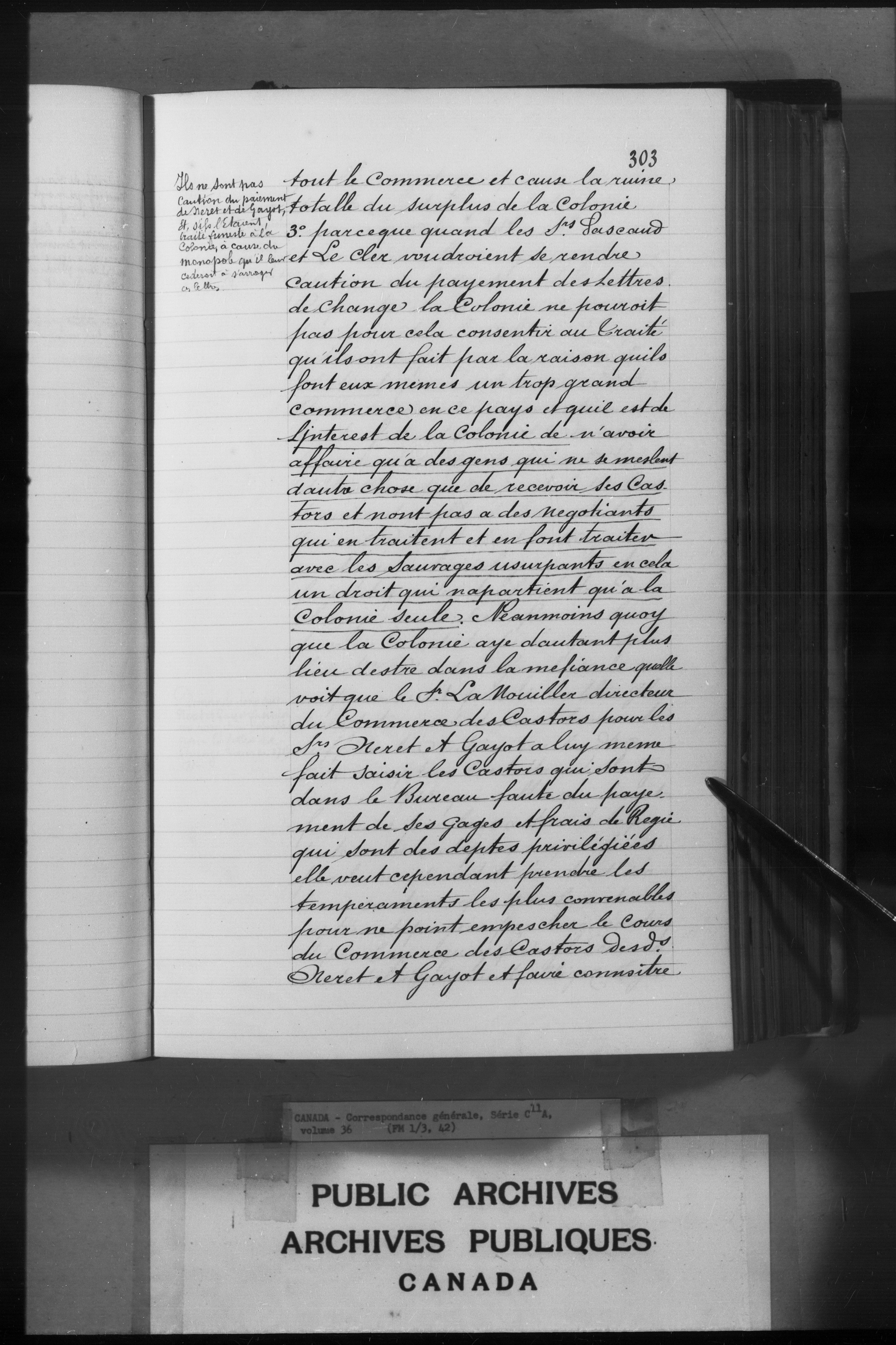 France fonds des Colonies : Série C11A. Correspondance générale; Canada : C-2385