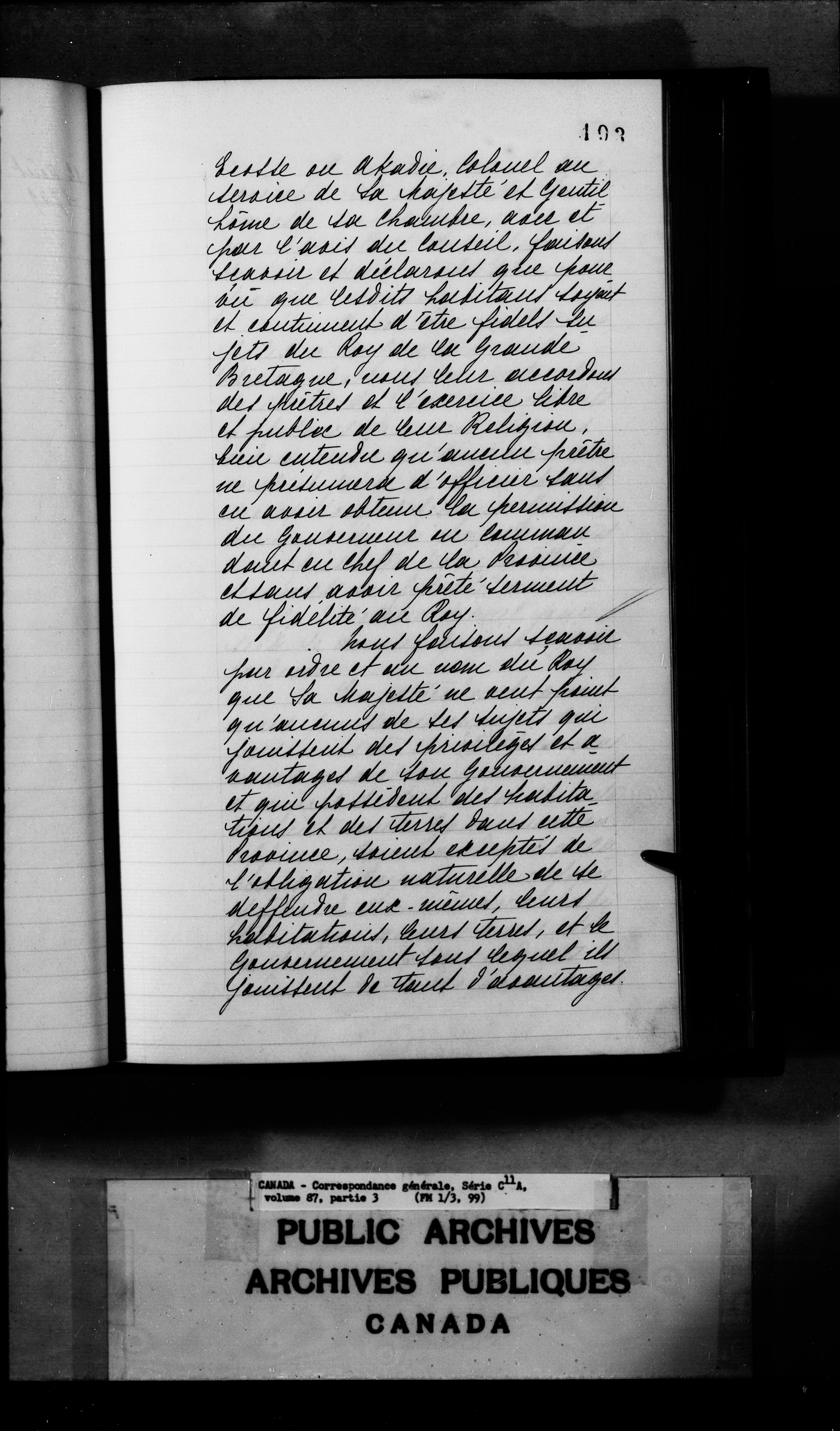 France fonds des Colonies : Série C11A. Correspondance générale; Canada : C-2397