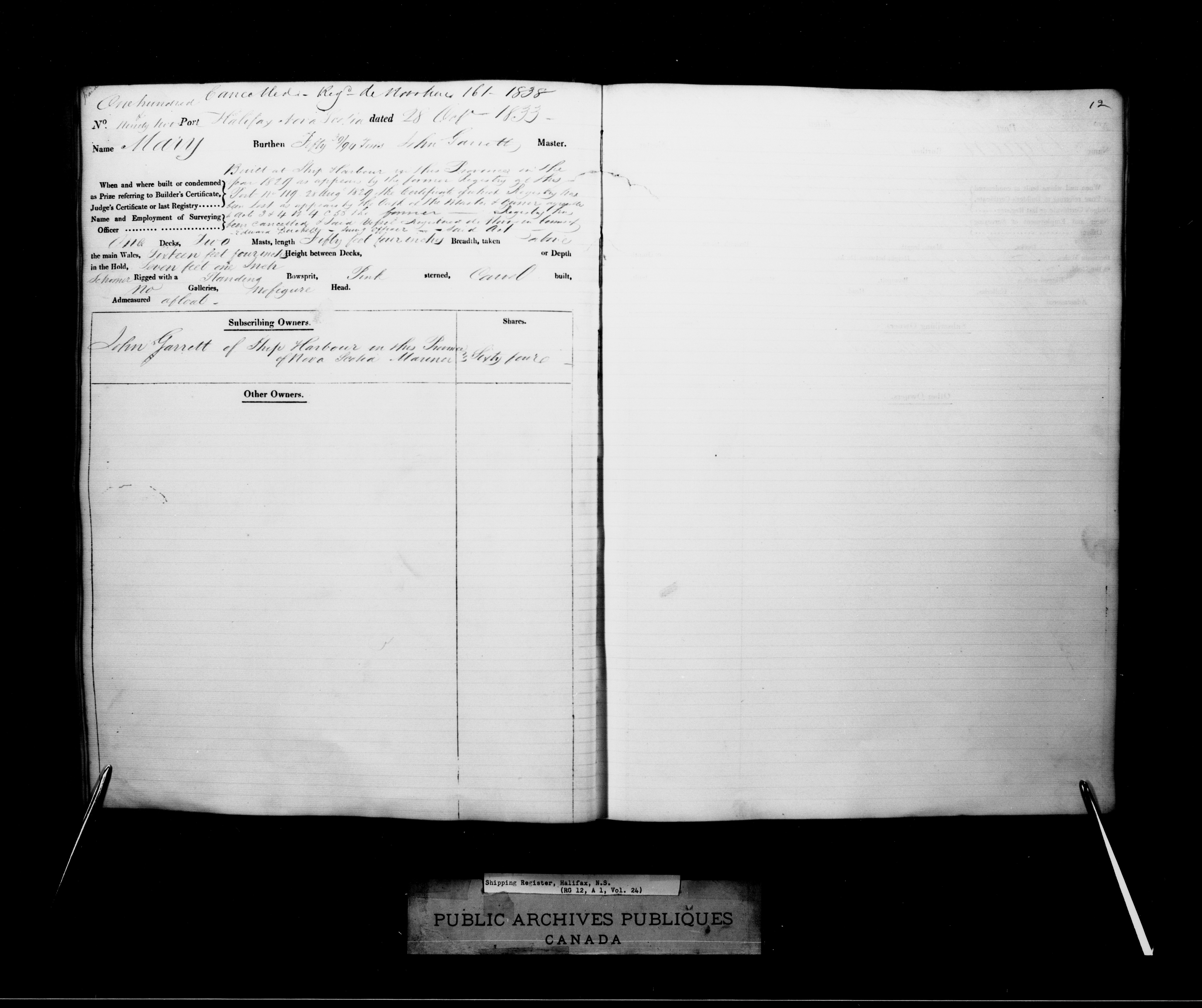 Halifax [Nova Scotia] Registrar of Shipping, 1817-1903 : C-2413