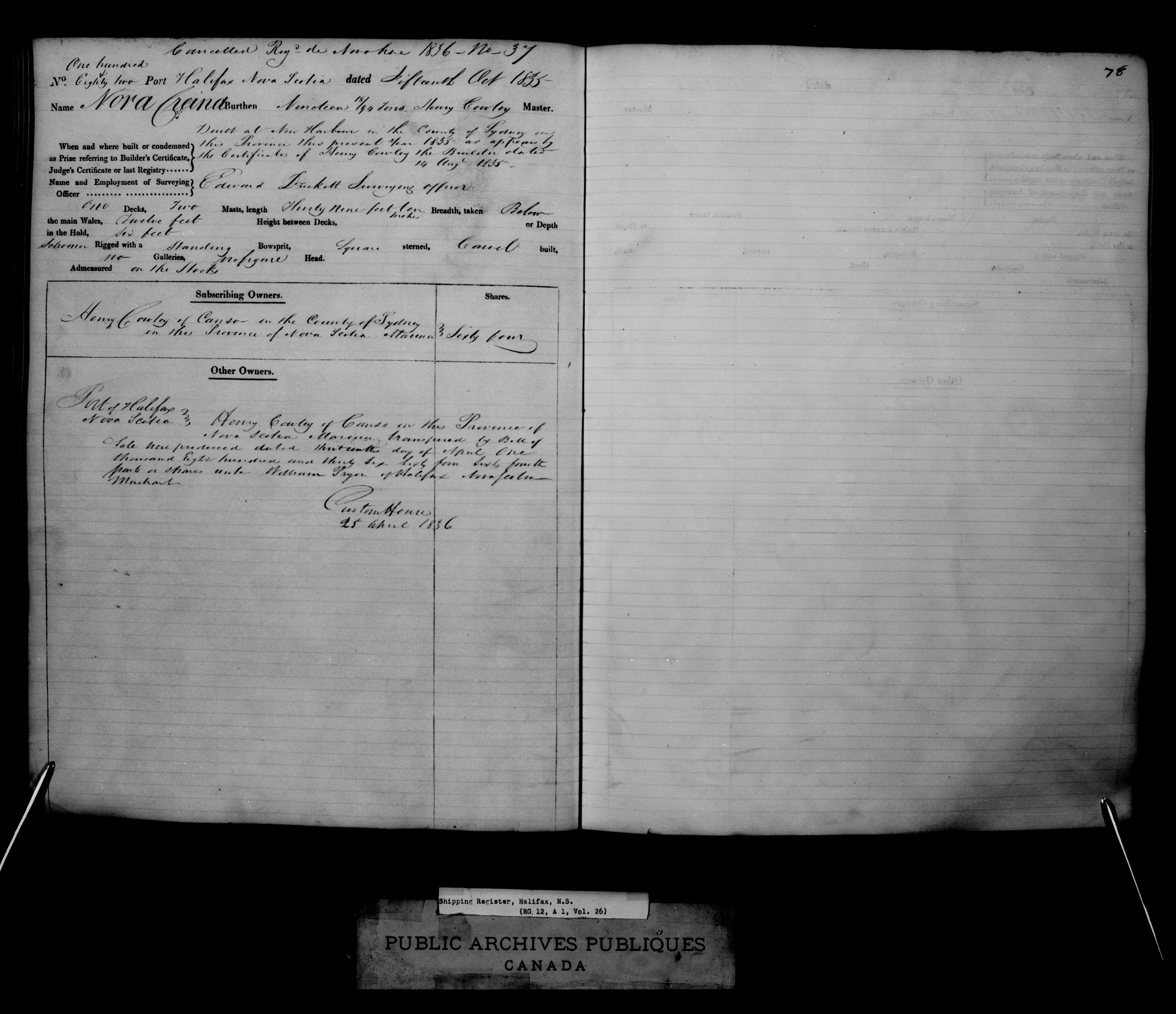 Halifax [Nova Scotia] Registrar of Shipping, 1817-1903 : C-2414