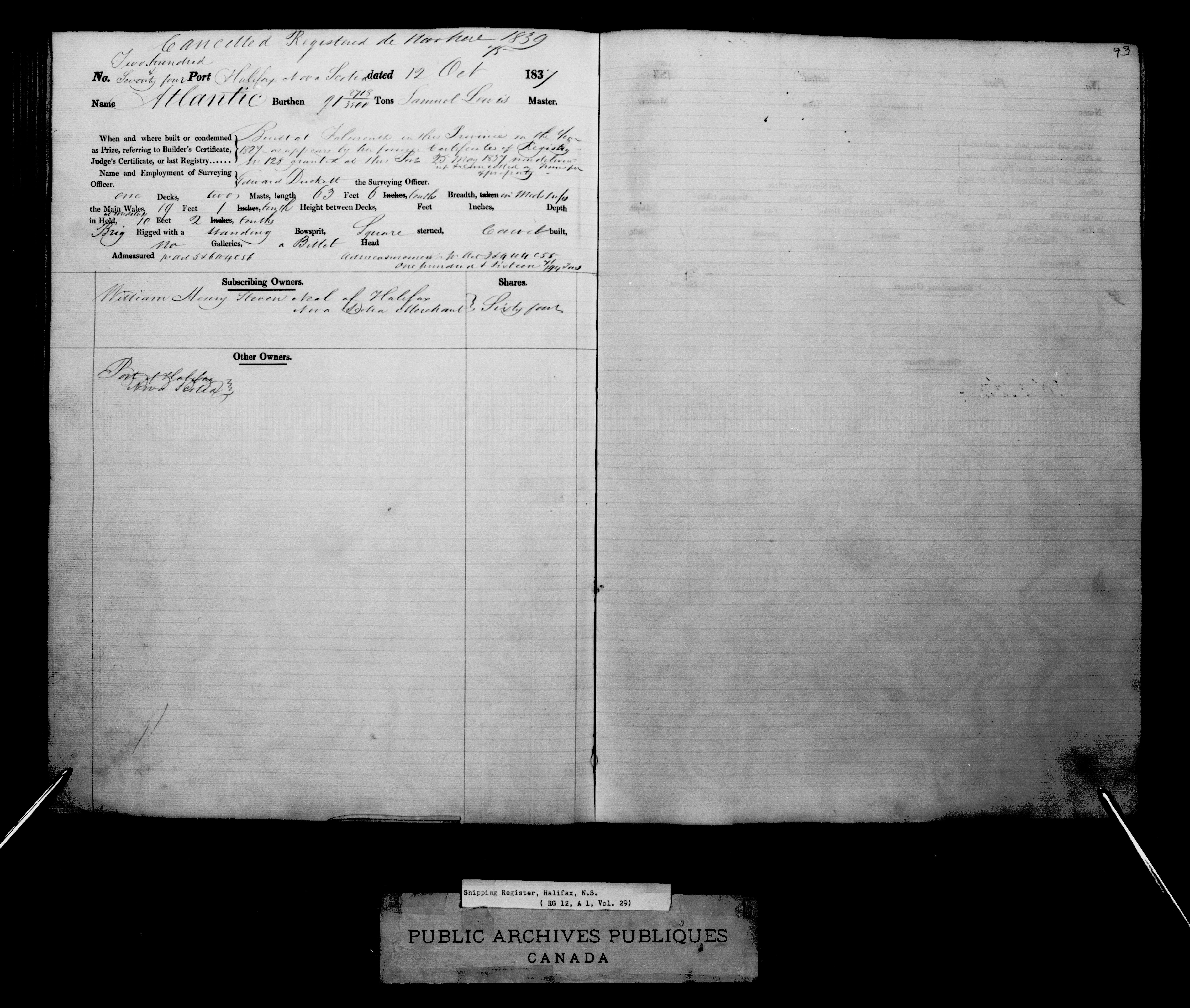 Halifax [Nova Scotia] Registrar of Shipping, 1817-1903 : C-2415