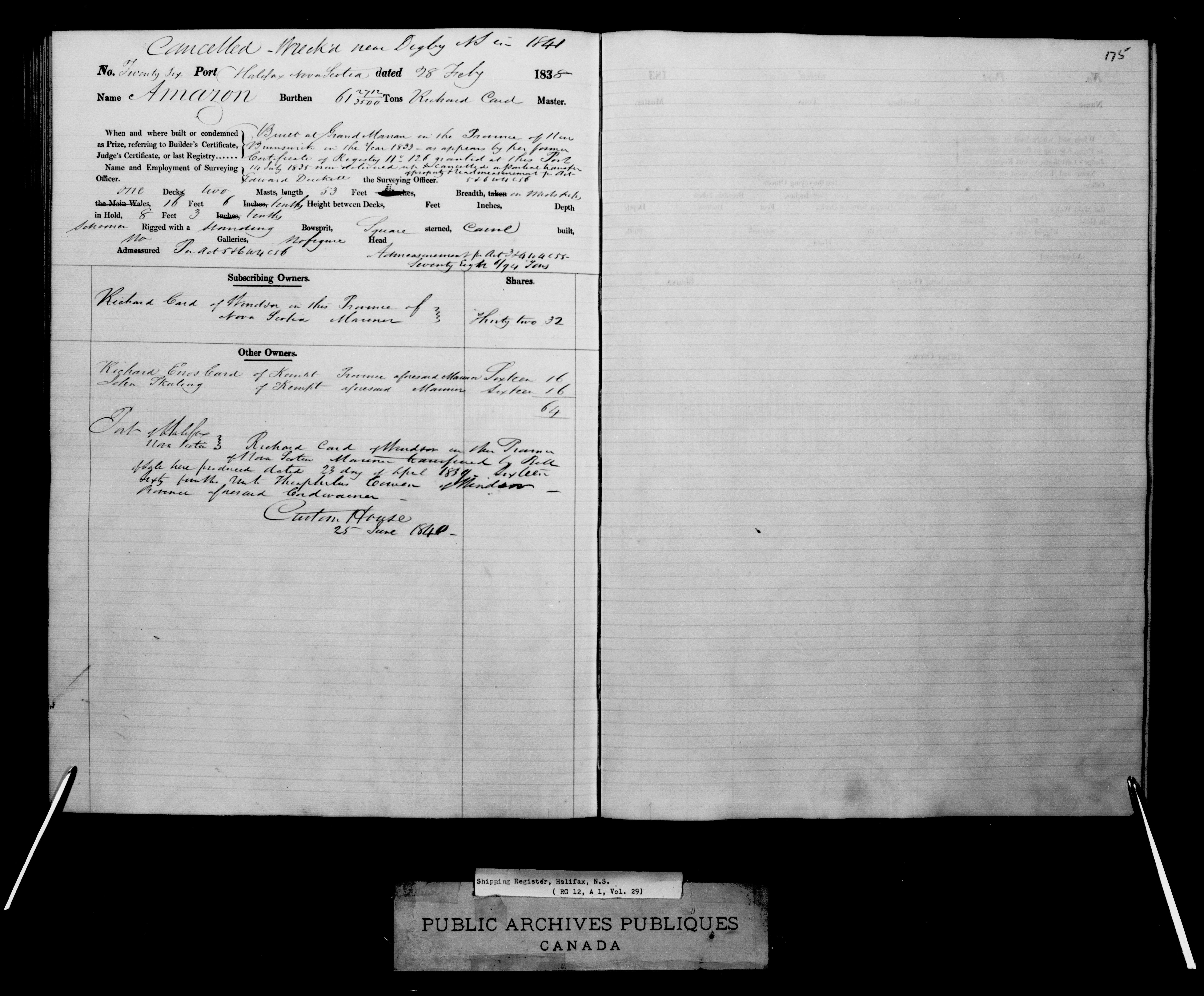 Halifax [Nova Scotia] Registrar of Shipping, 1817-1903 : C-2415