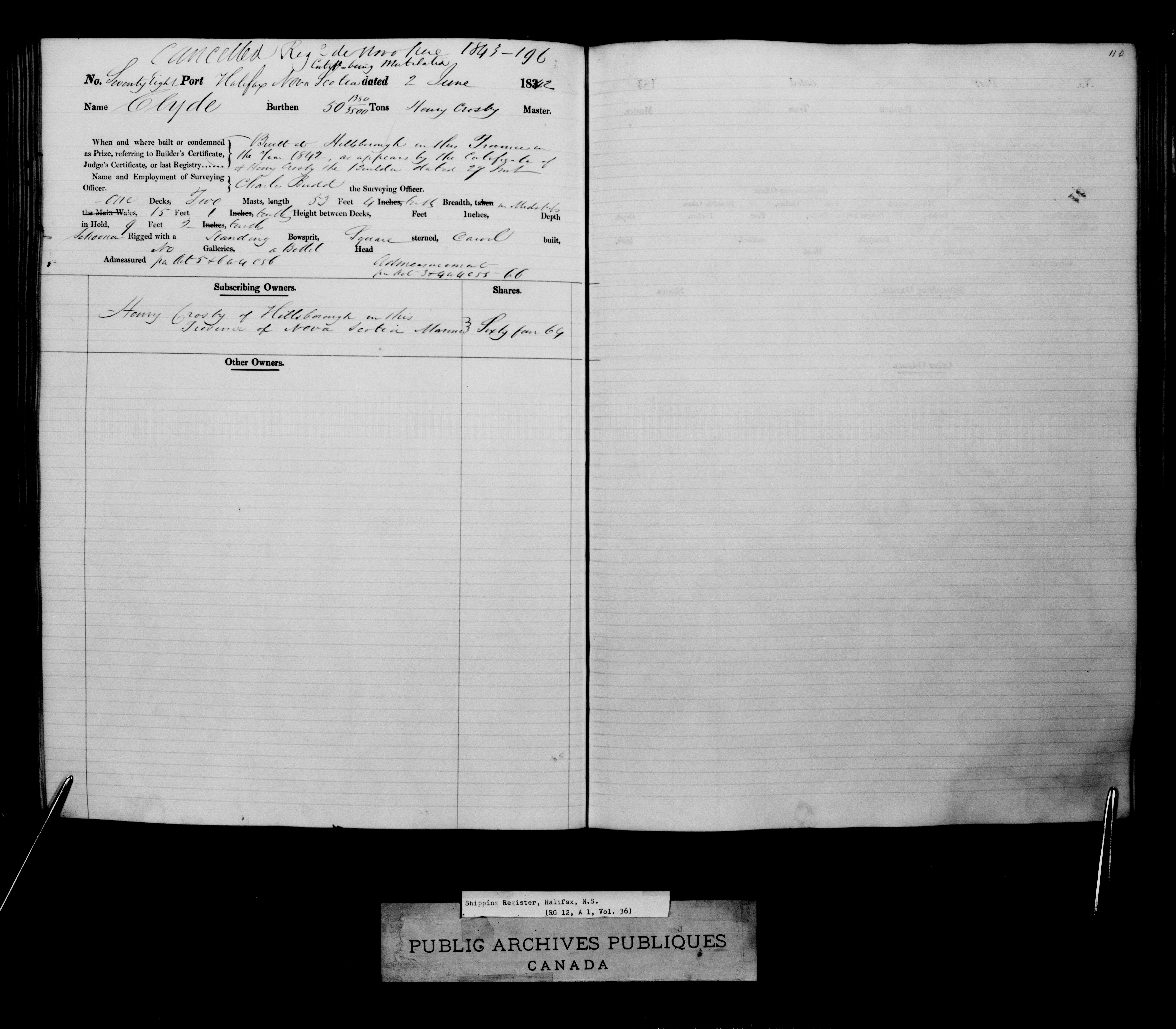 Halifax [Nova Scotia] Registrar of Shipping, 1817-1903 : C-2417