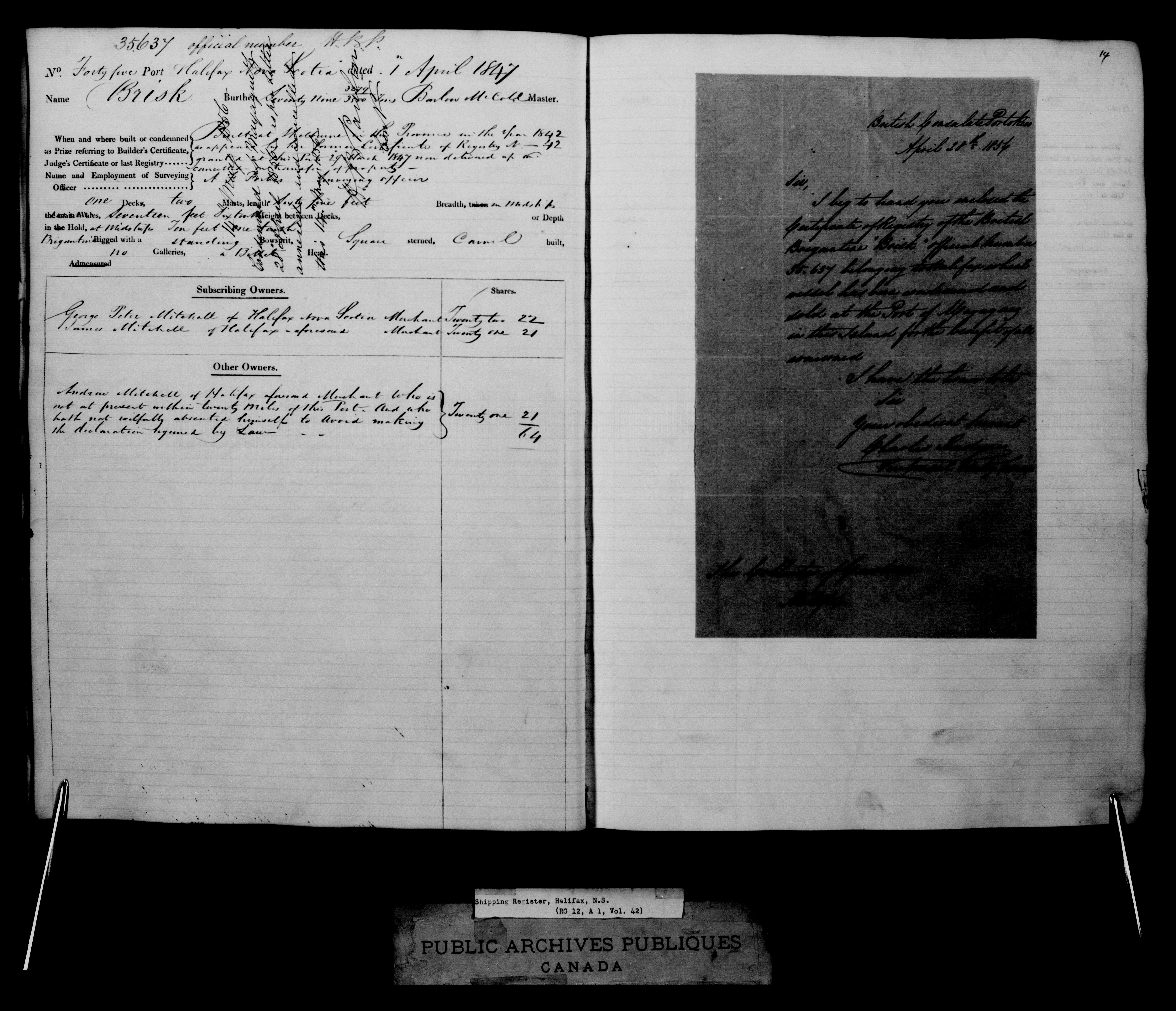 Halifax [Nova Scotia] Registrar of Shipping, 1817-1903 : C-2419