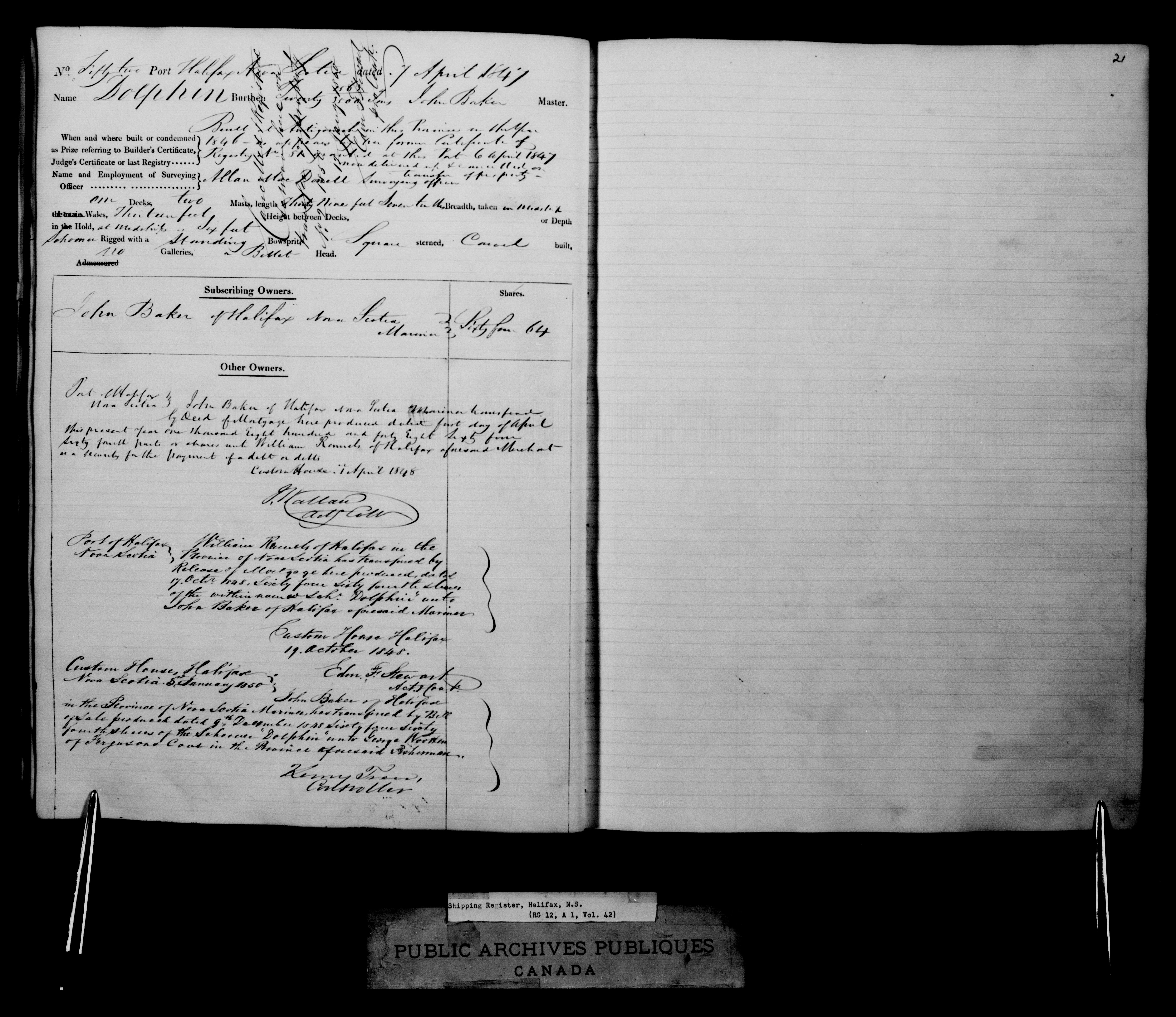 Halifax [Nova Scotia] Registrar of Shipping, 1817-1903 : C-2419