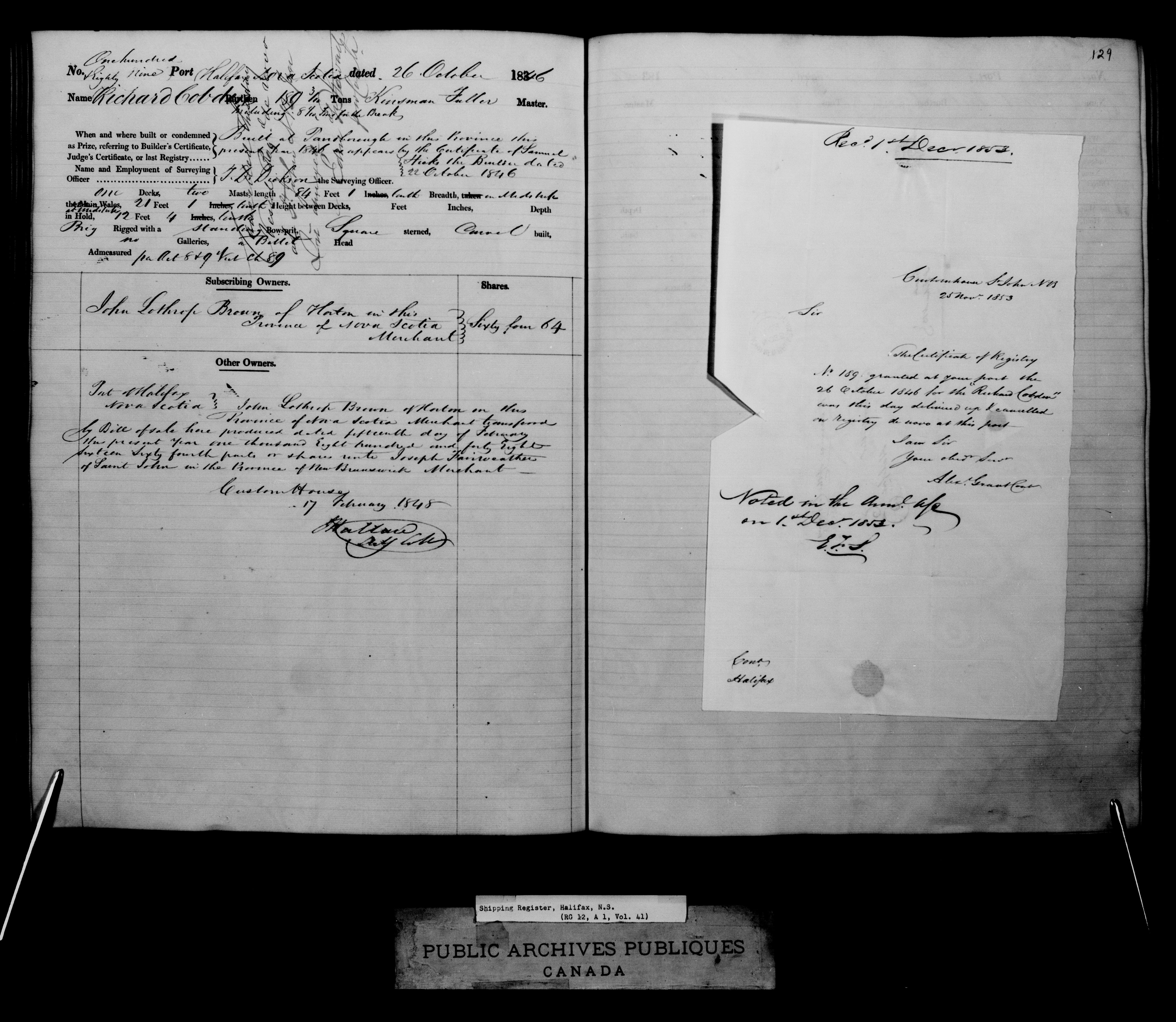 Halifax [Nova Scotia] Registrar of Shipping, 1817-1903 : C-2419