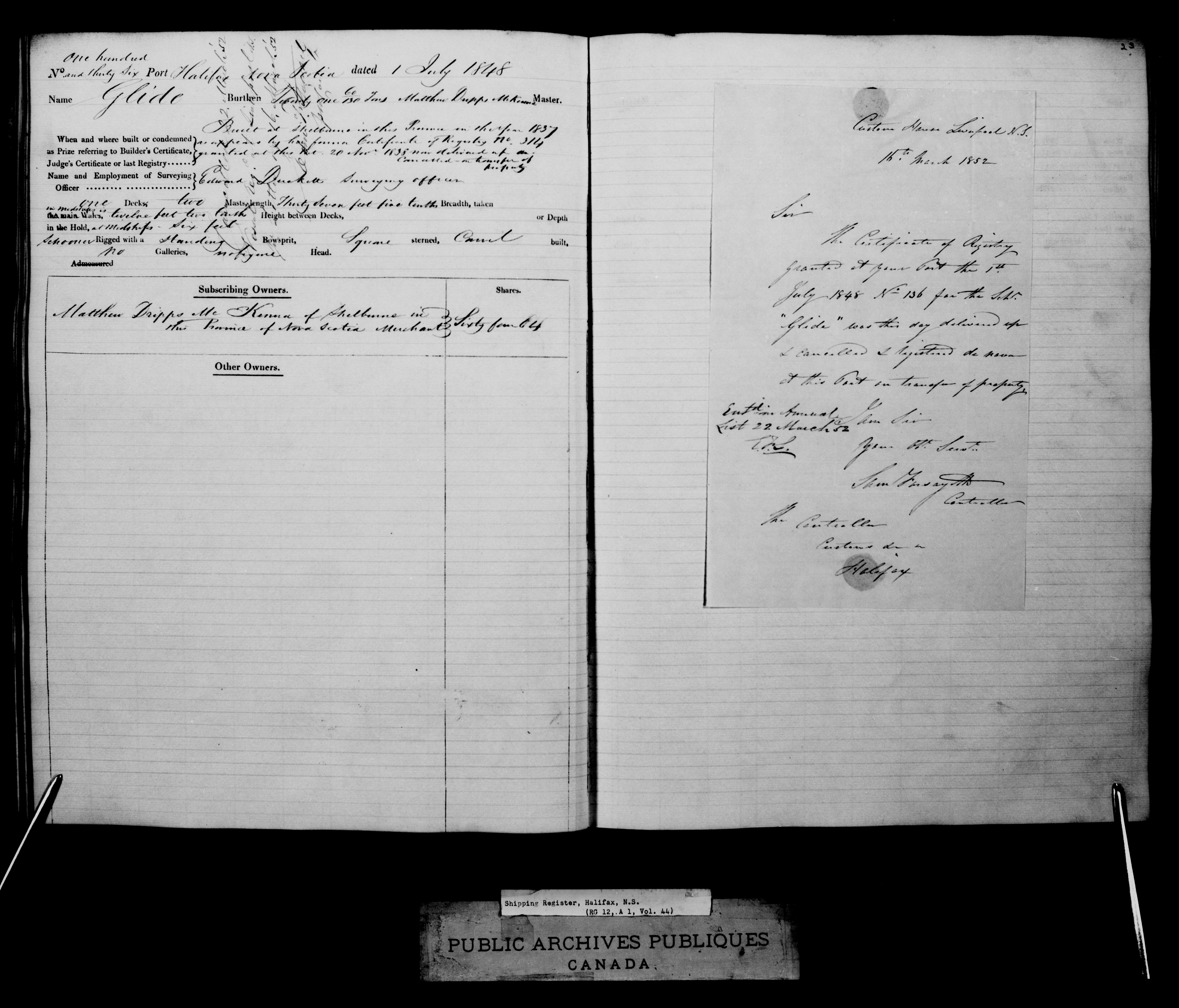 Halifax [Nova Scotia] Registrar of Shipping, 1817-1903 : C-2419