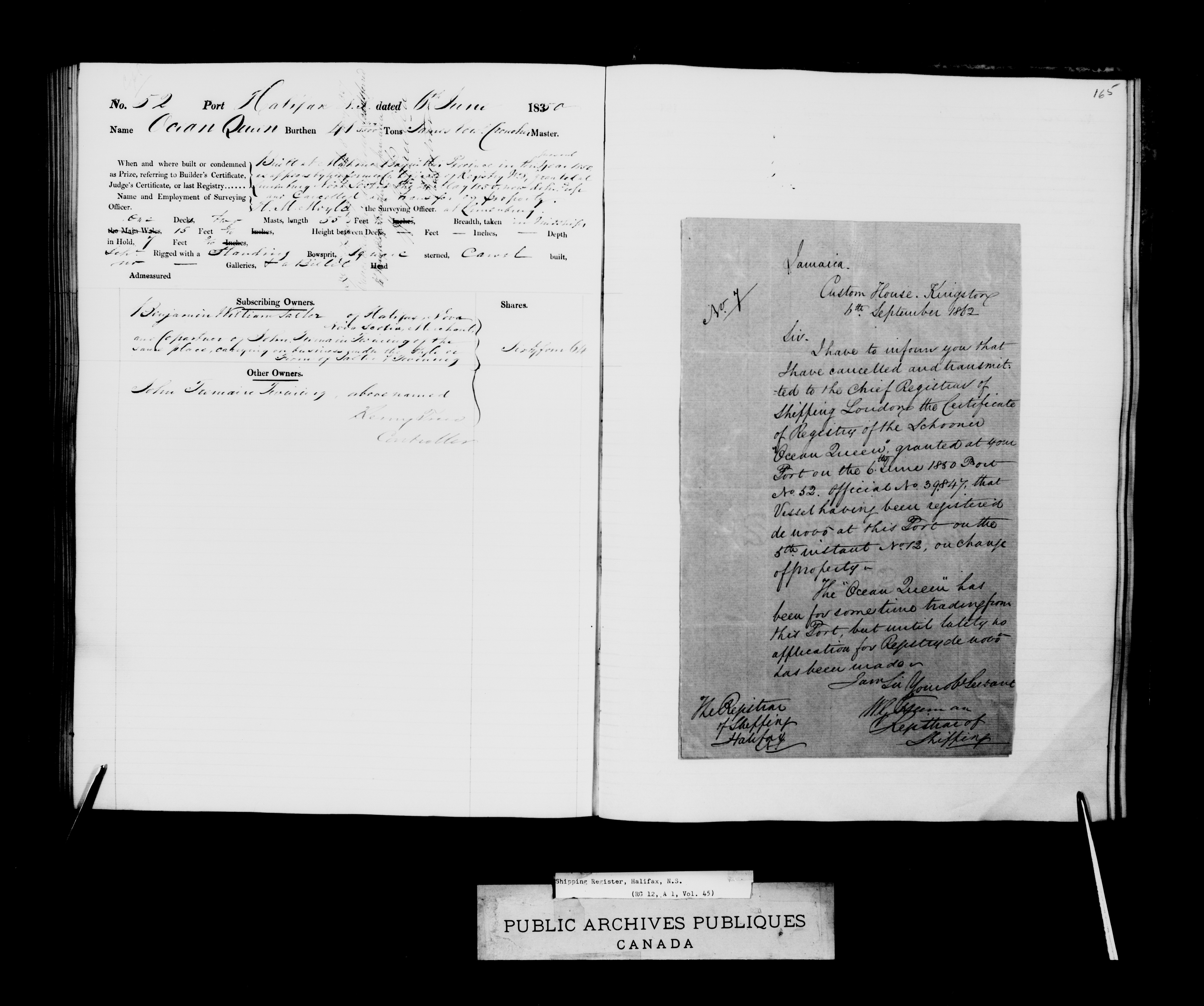 Halifax [Nova Scotia] Registrar of Shipping, 1817-1903 : C-2420