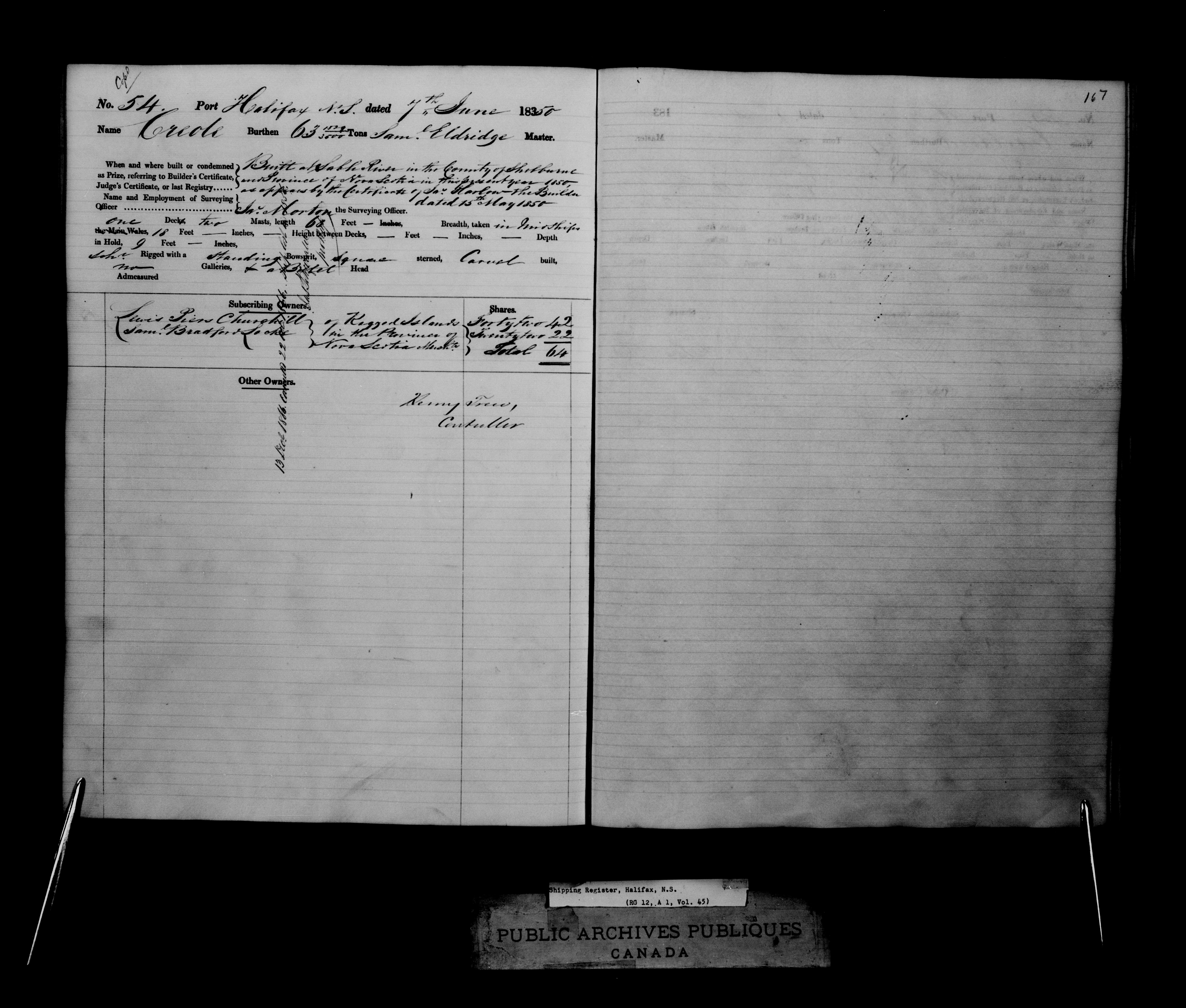 Halifax [Nova Scotia] Registrar of Shipping, 1817-1903 : C-2420