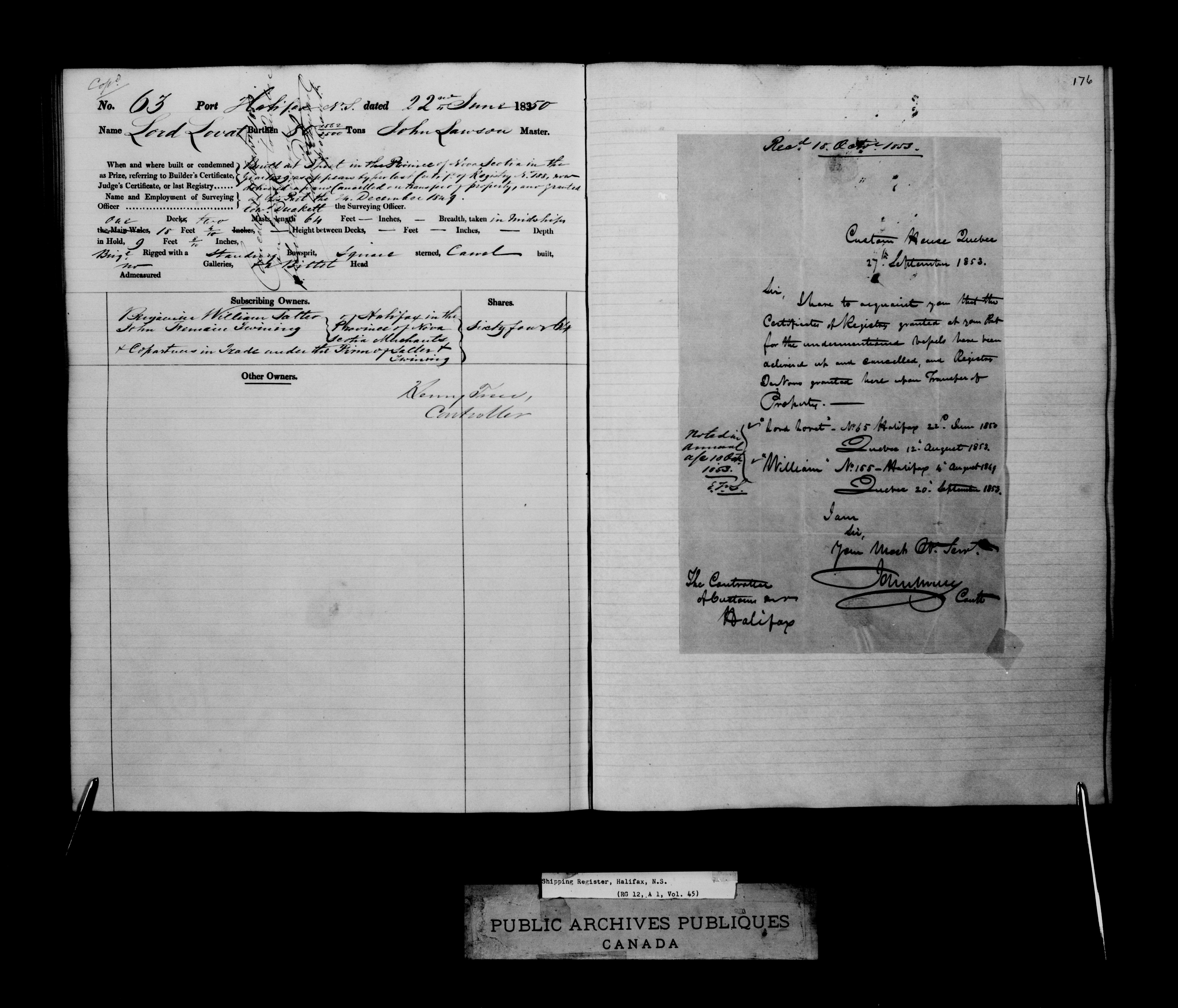 Halifax [Nova Scotia] Registrar of Shipping, 1817-1903 : C-2420