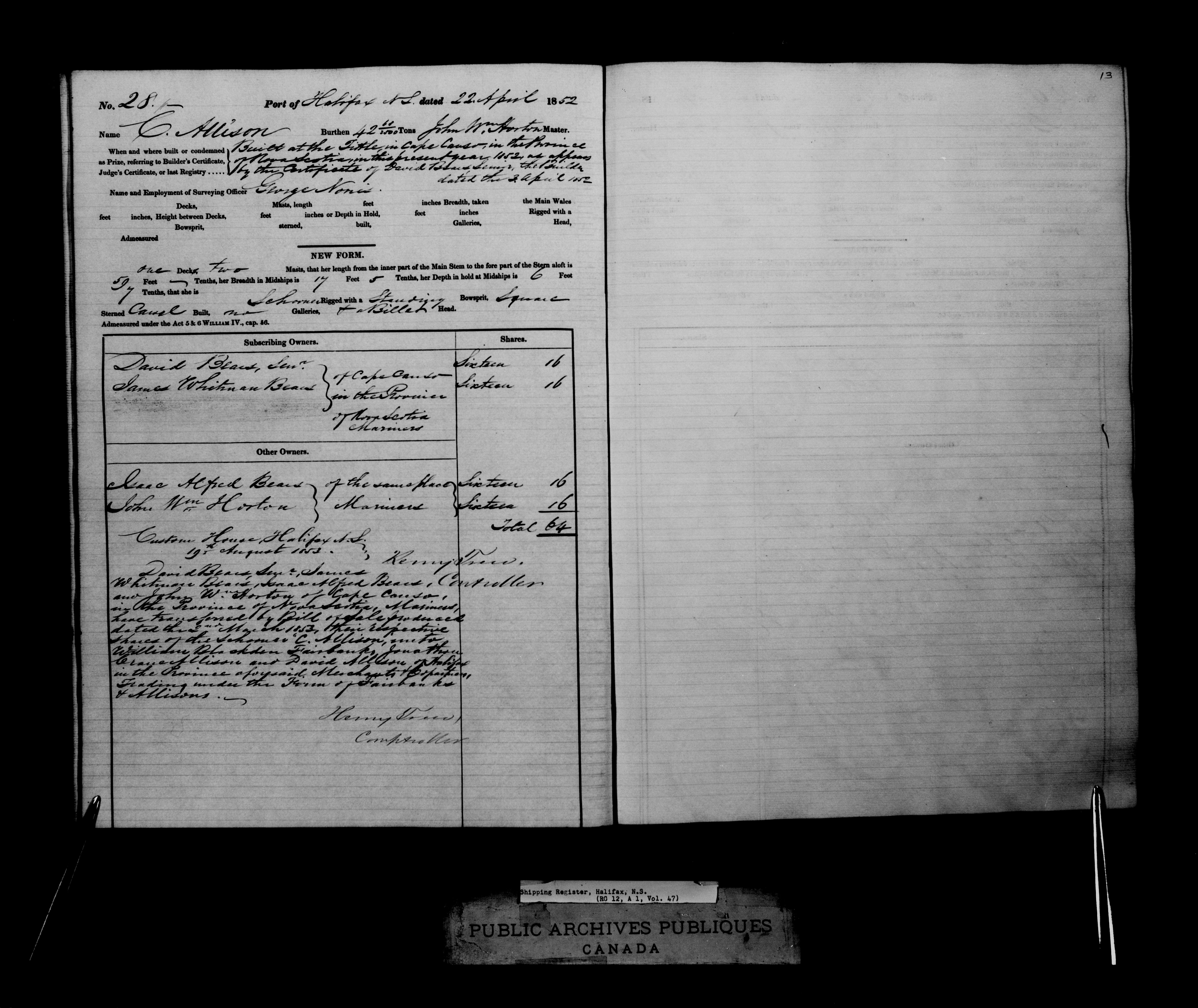Halifax [Nova Scotia] Registrar of Shipping, 1817-1903 : C-2420
