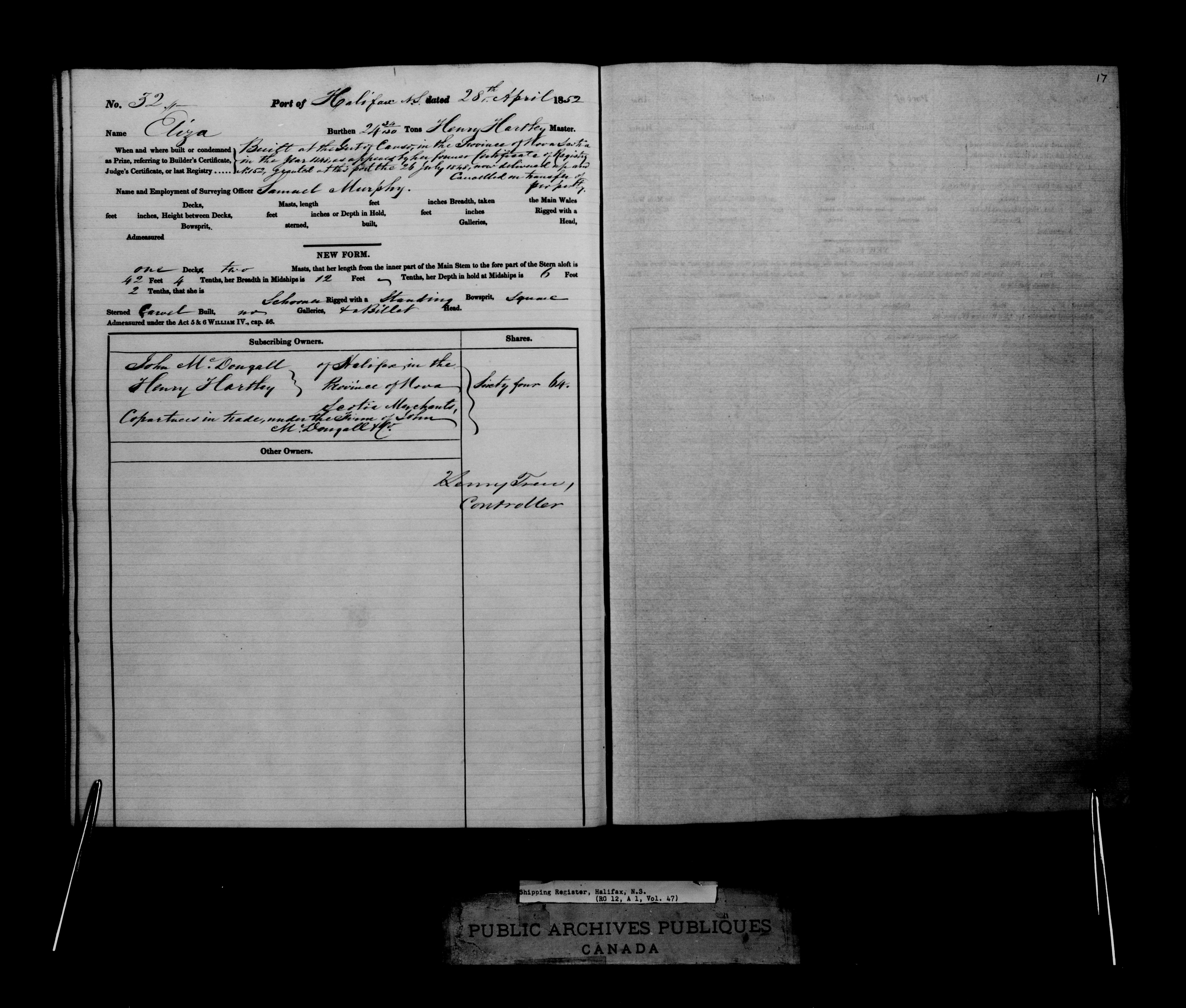 Halifax [Nova Scotia] Registrar of Shipping, 1817-1903 : C-2420