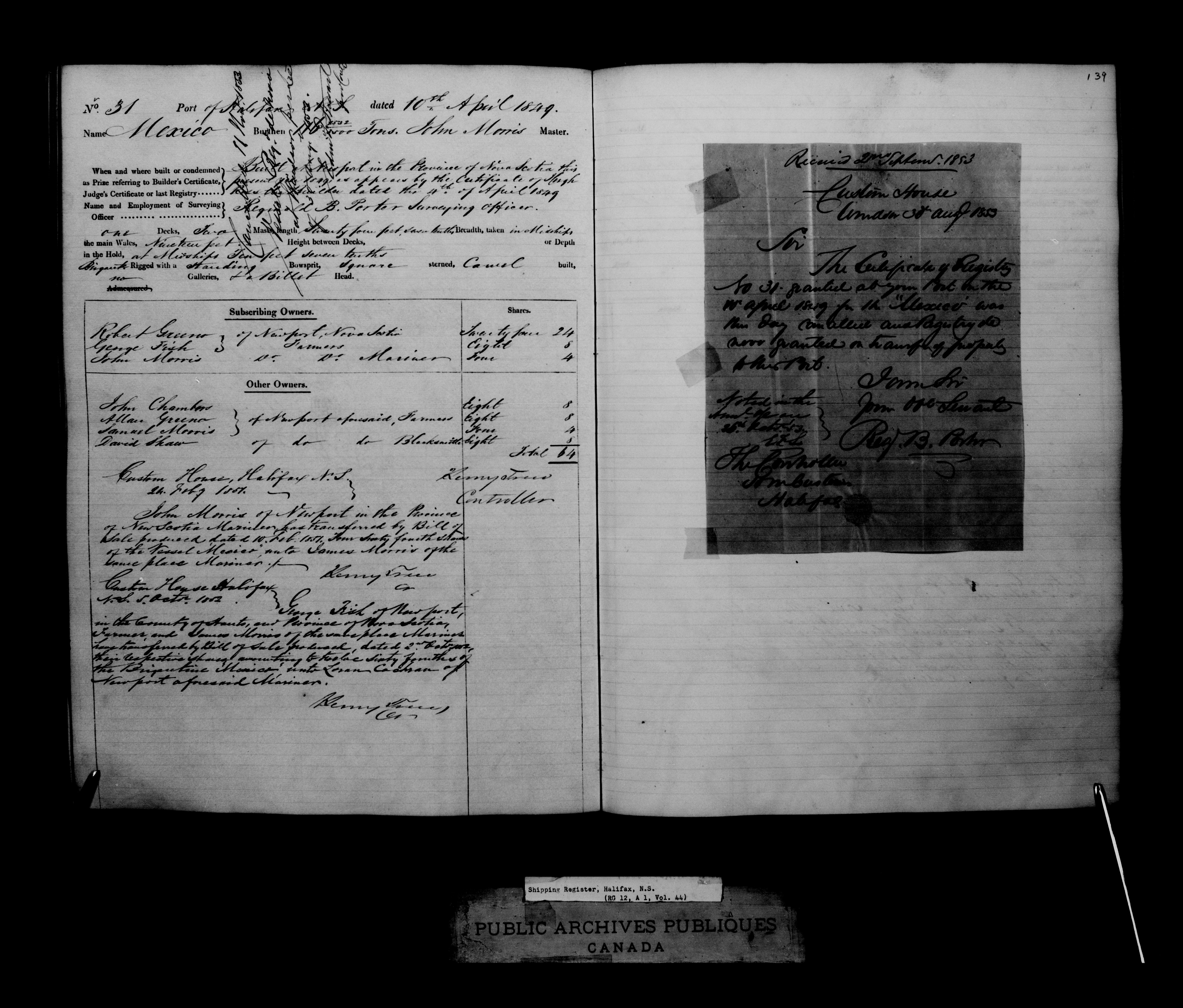 Halifax [Nova Scotia] Registrar of Shipping, 1817-1903 : C-2420