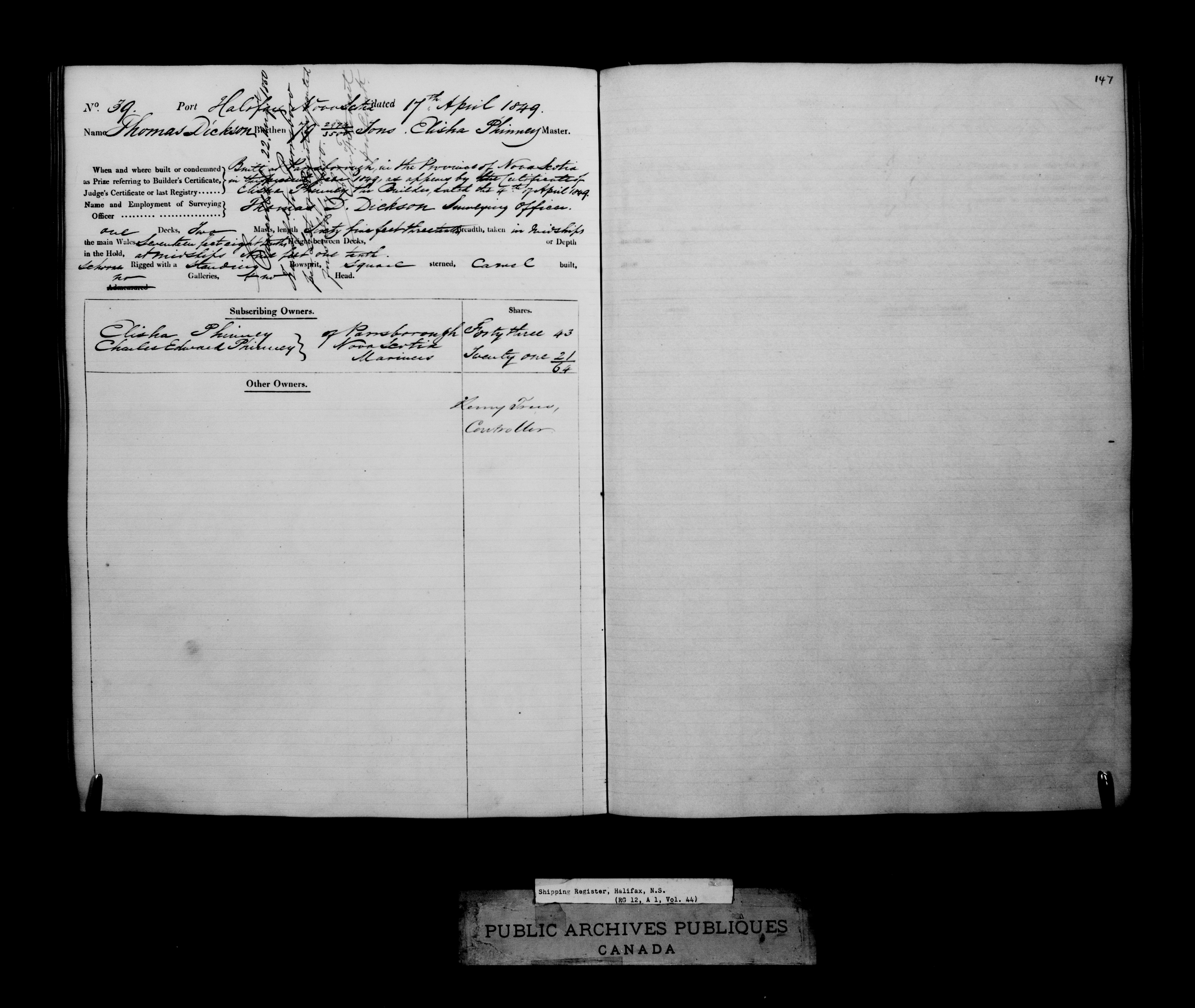Halifax [Nova Scotia] Registrar of Shipping, 1817-1903 : C-2420