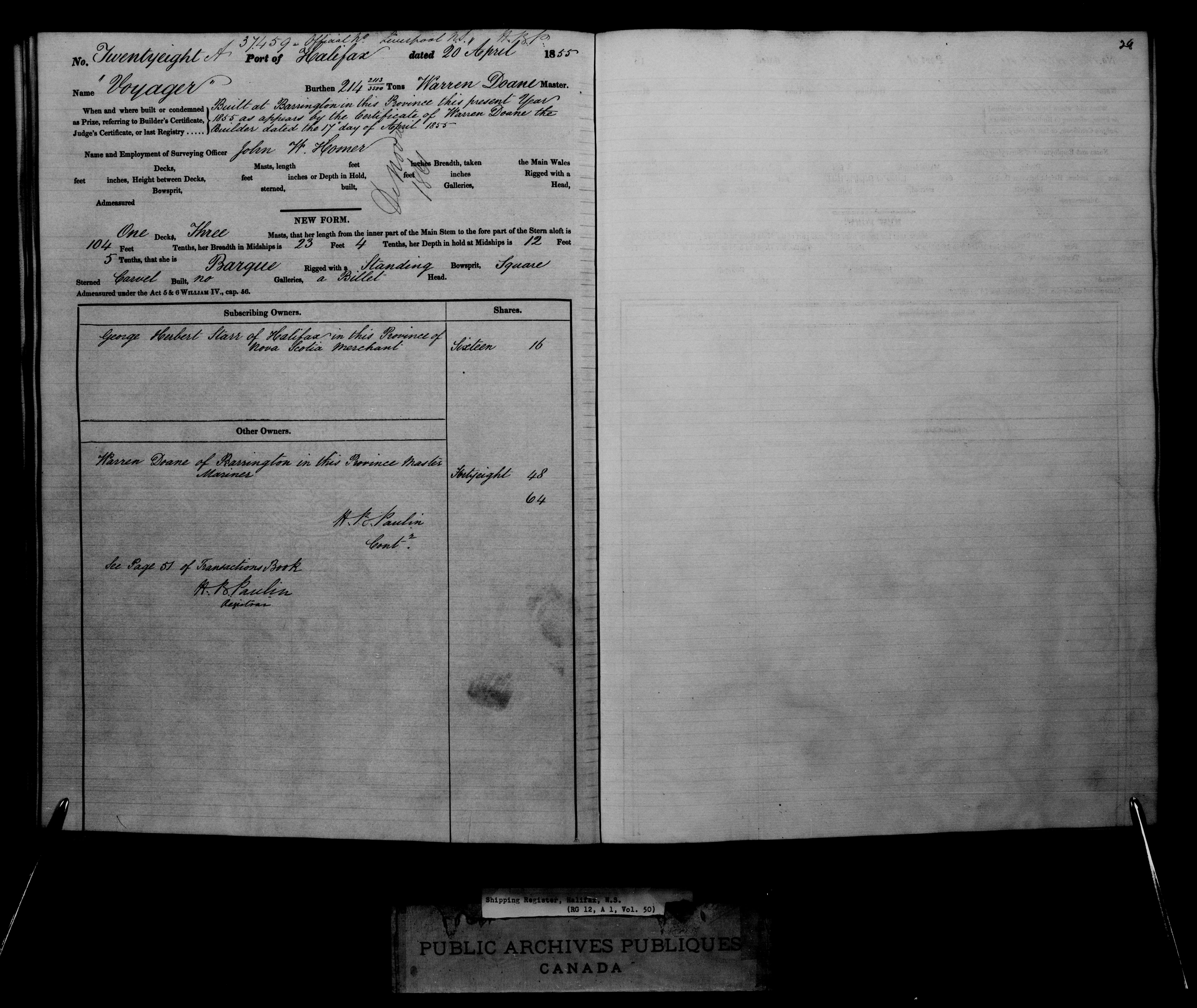 Halifax Registrar of Shipping - 2421