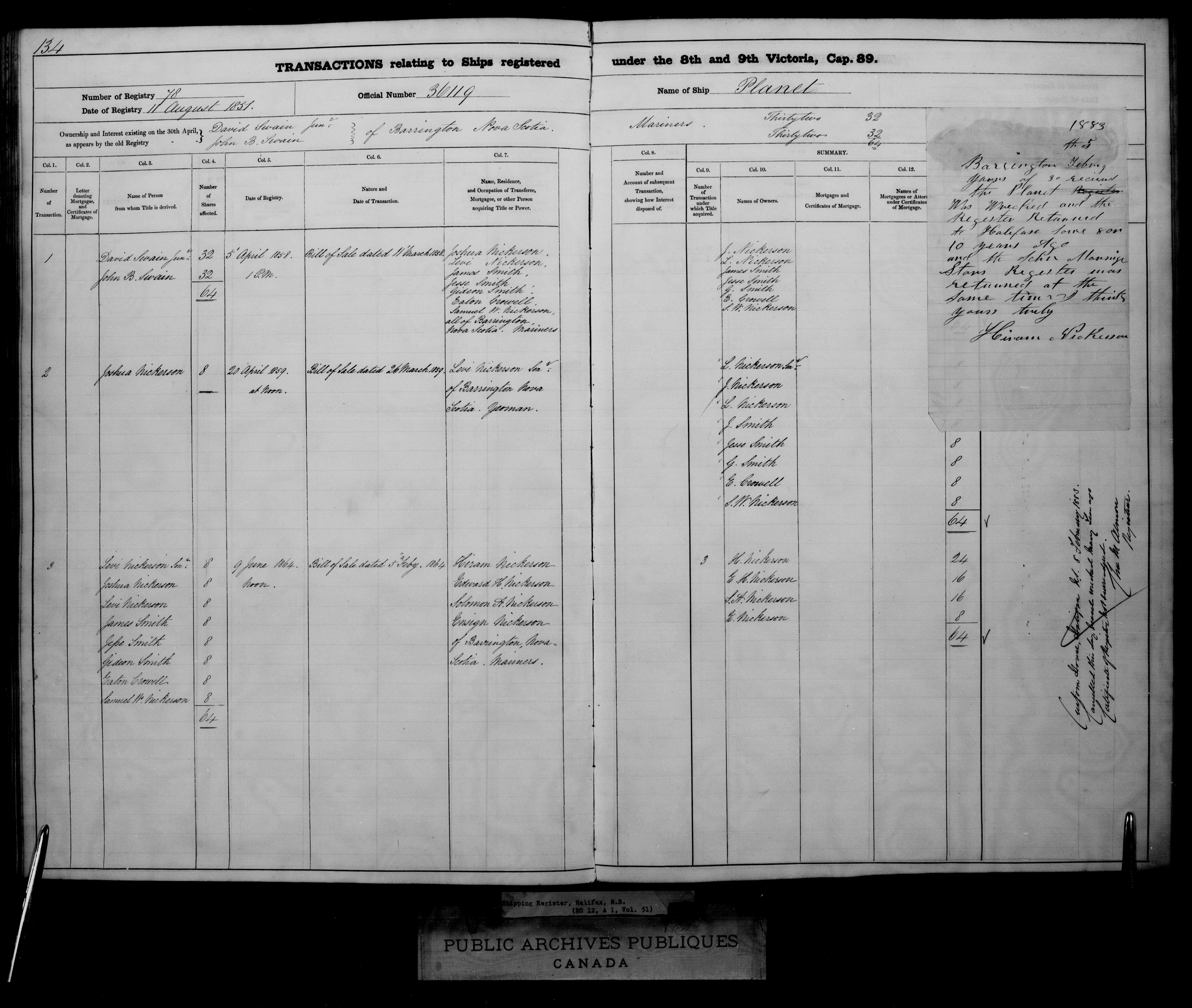 Halifax Registrar of Shipping - 2422