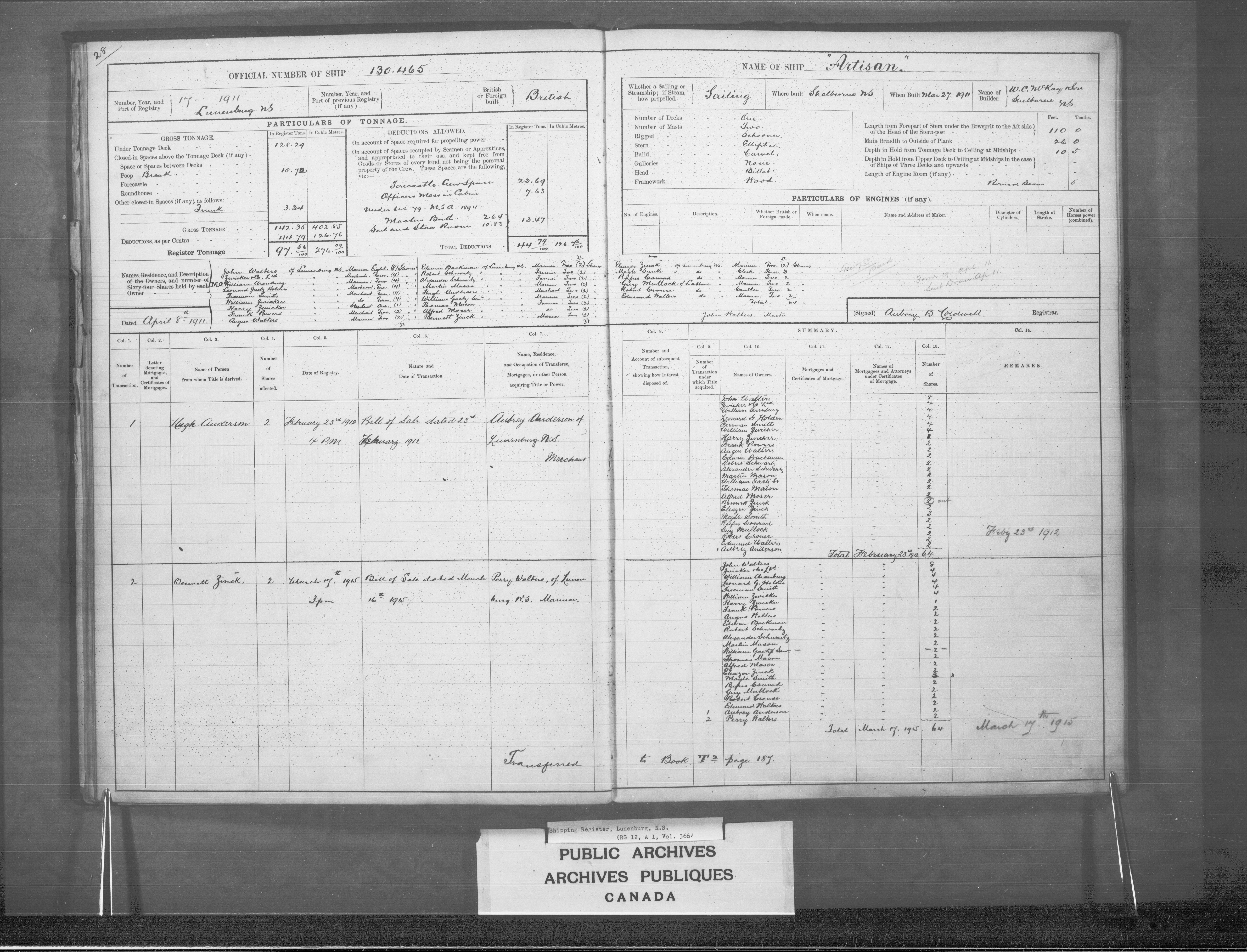 Lunenburg Registrar of Shipping - 2441