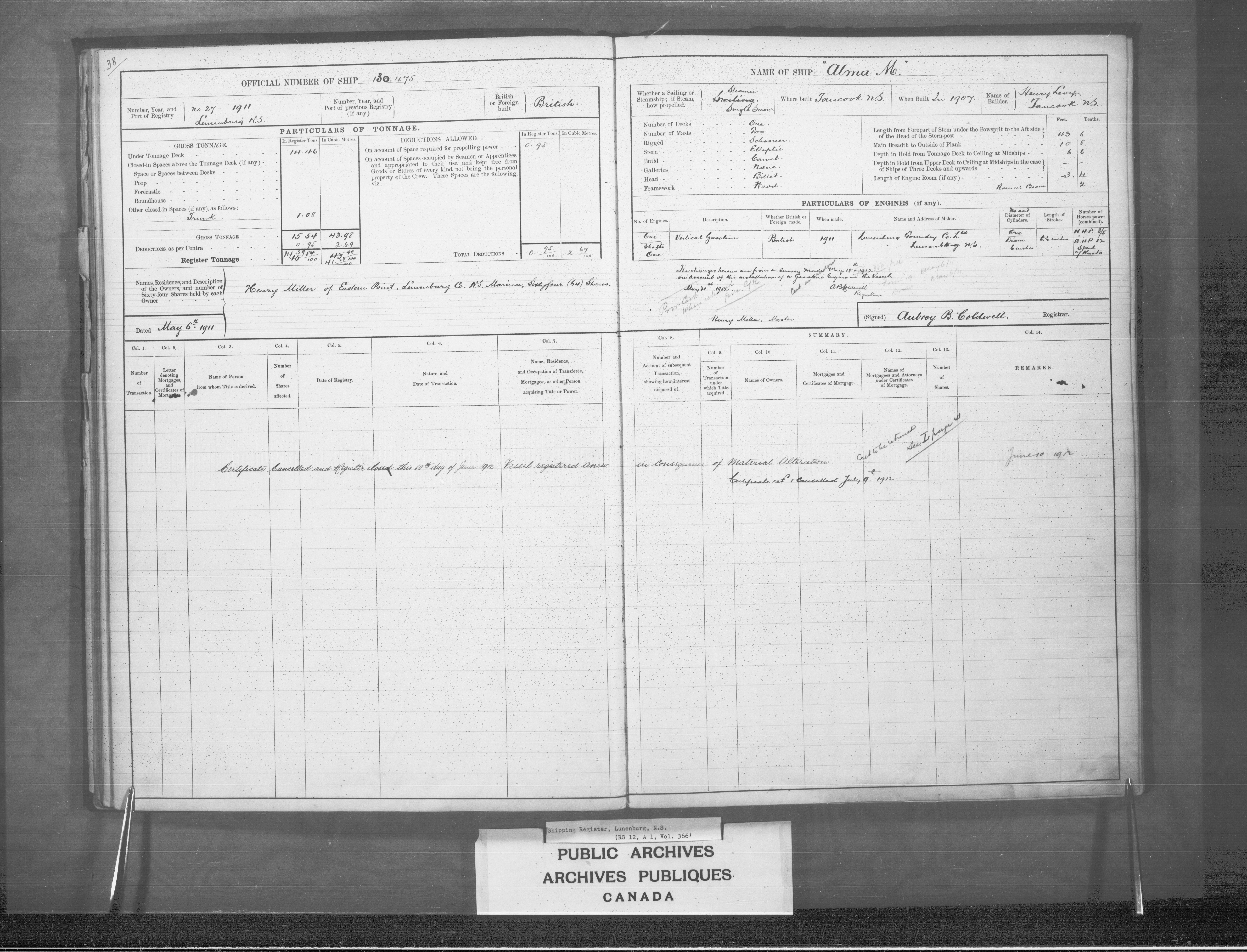 Lunenburg Registrar of Shipping - 2441