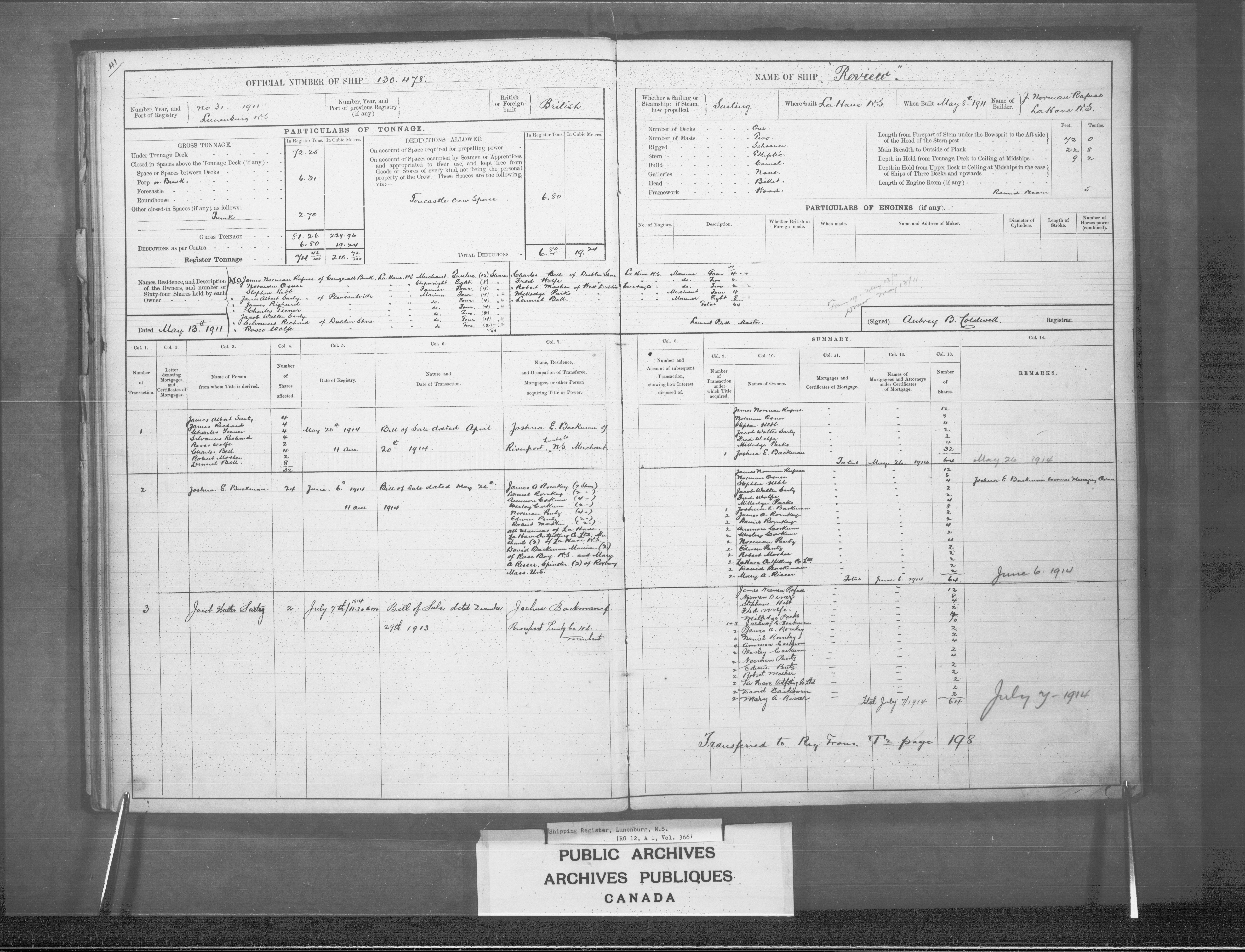 Lunenburg Registrar of Shipping - 2441