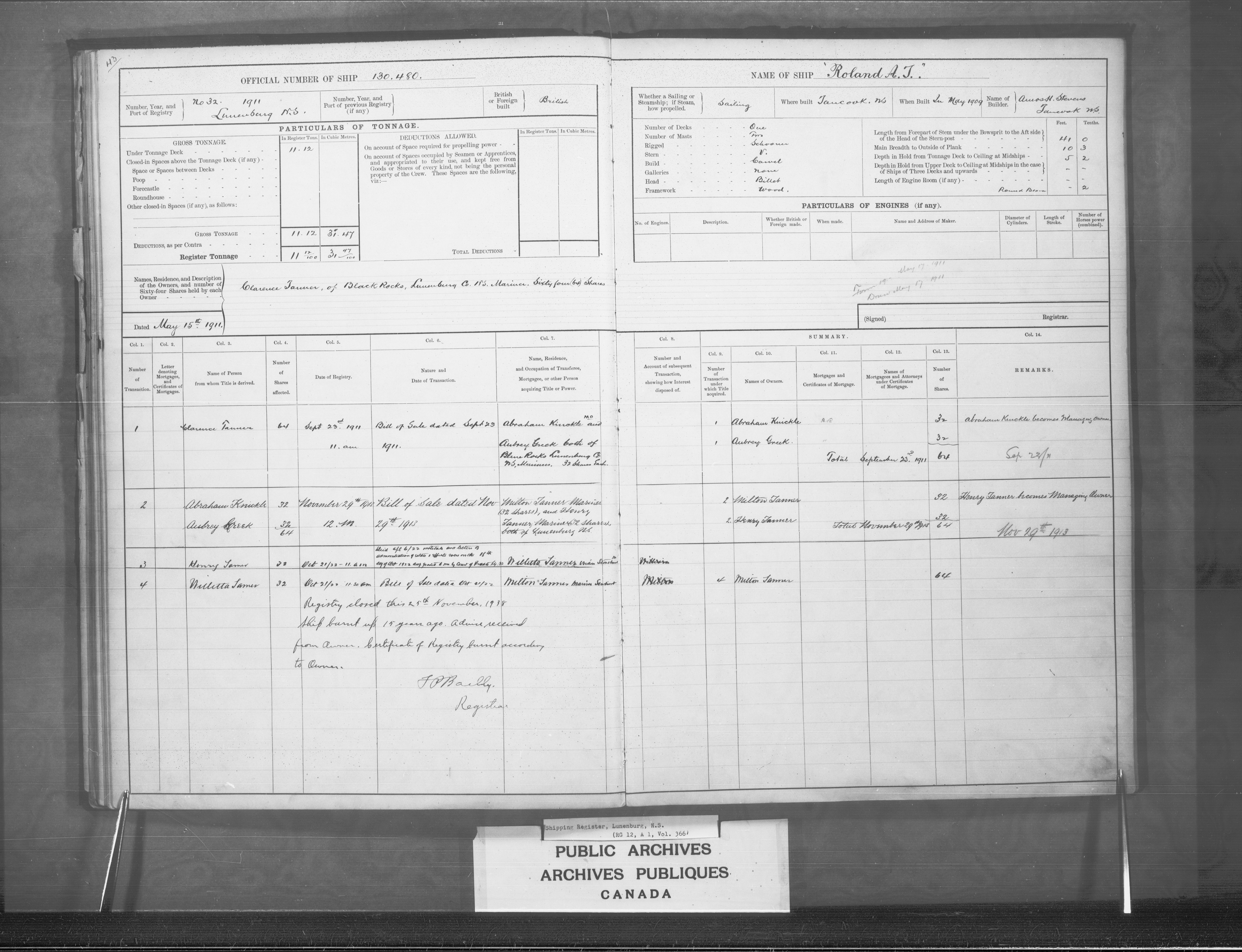 Lunenburg Registrar of Shipping - 2441