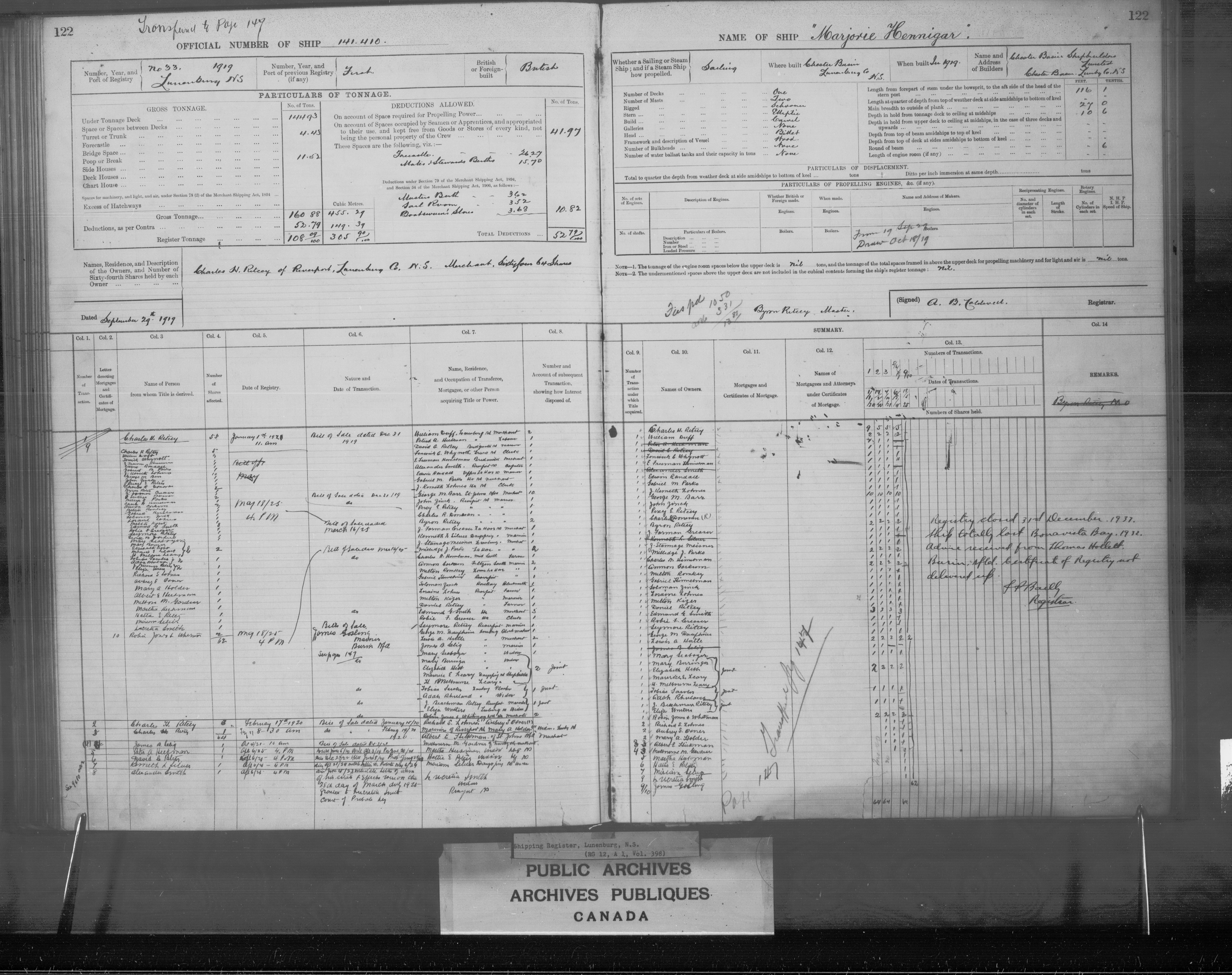 Lunenburg Registrar of Shipping - 2441