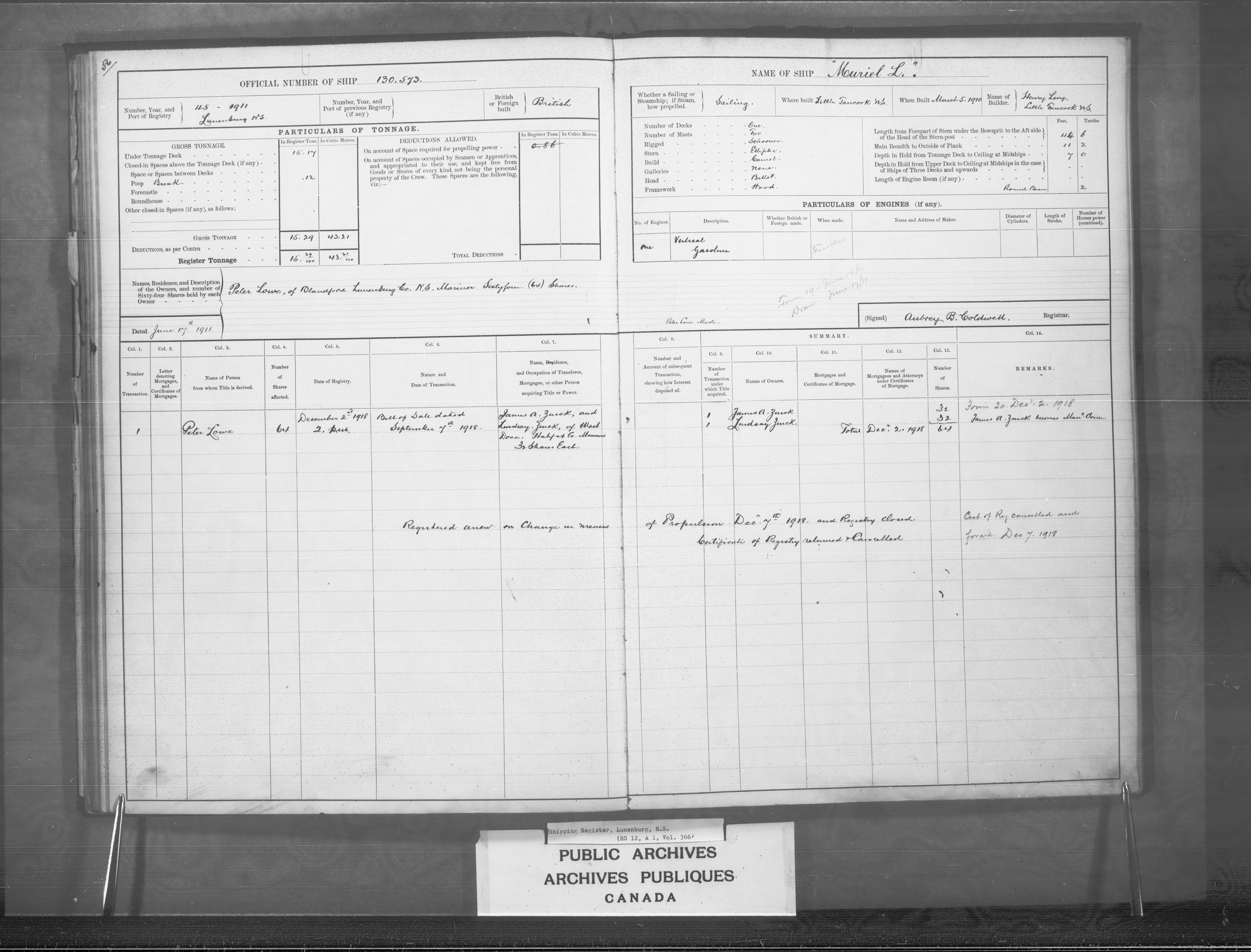 Lunenburg Registrar of Shipping - 2441