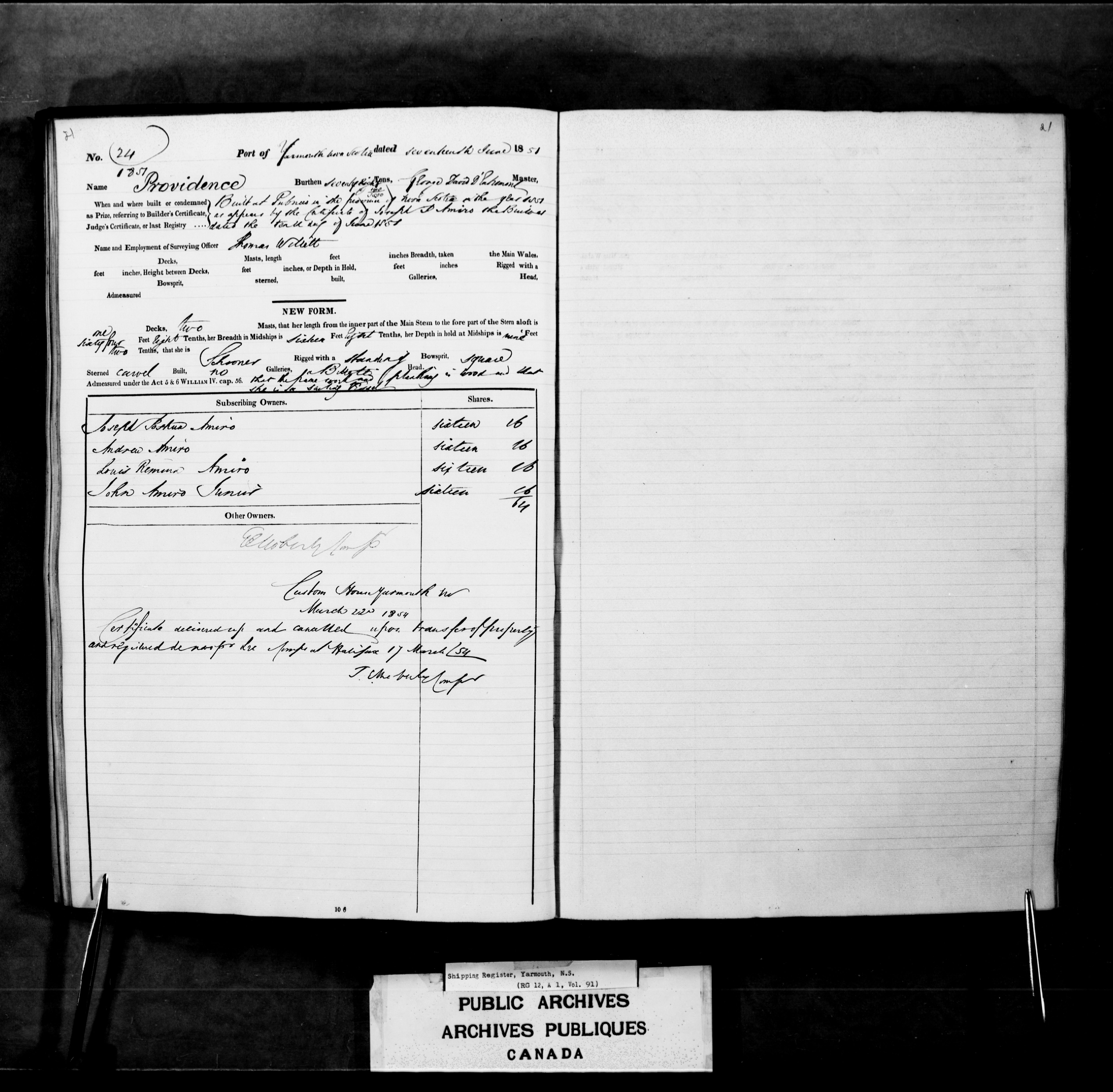 Yarmouth [Nova Scotia] Registrar of Shipping - 2446