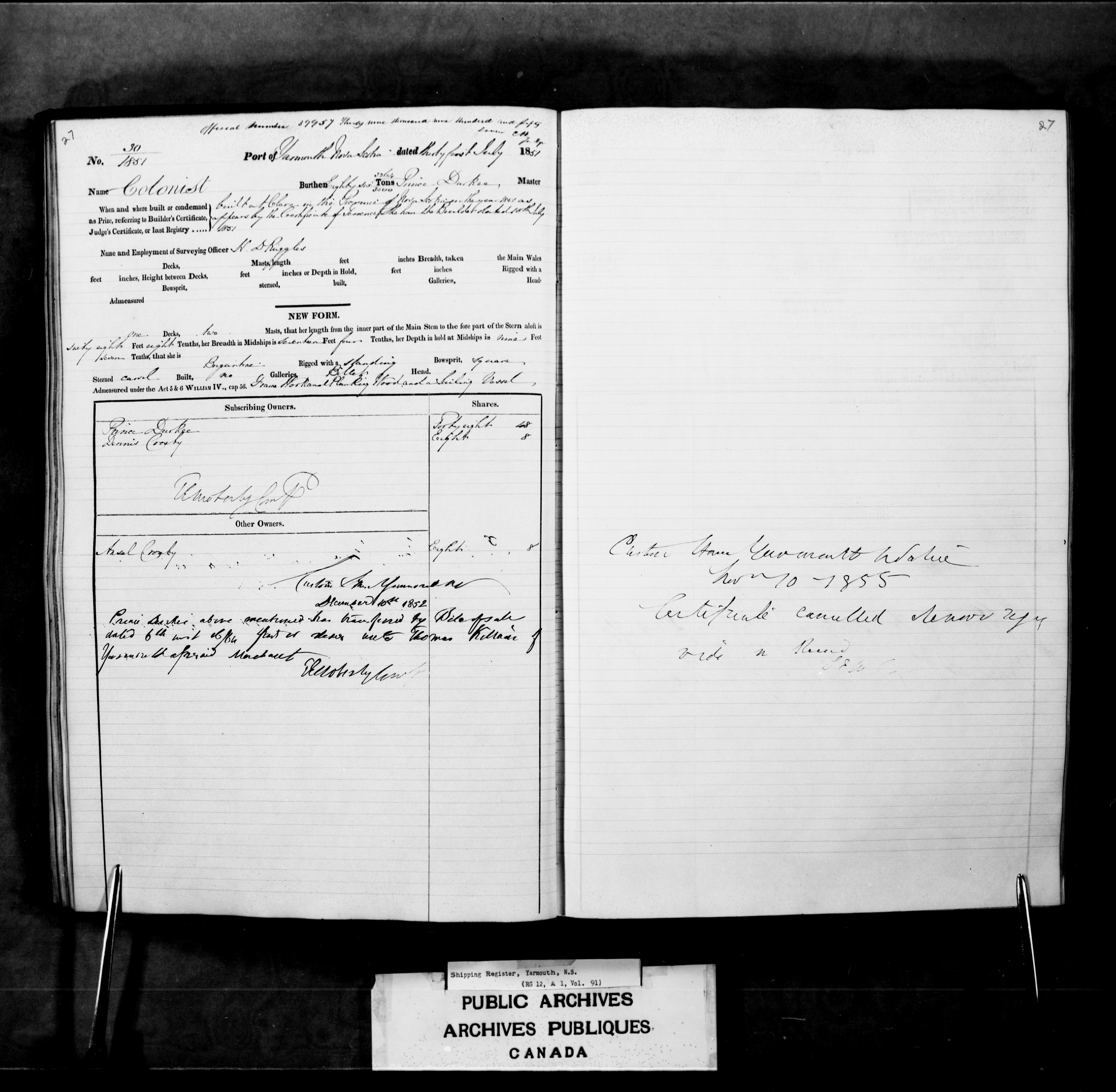 Yarmouth [Nova Scotia] Registrar of Shipping - 2446