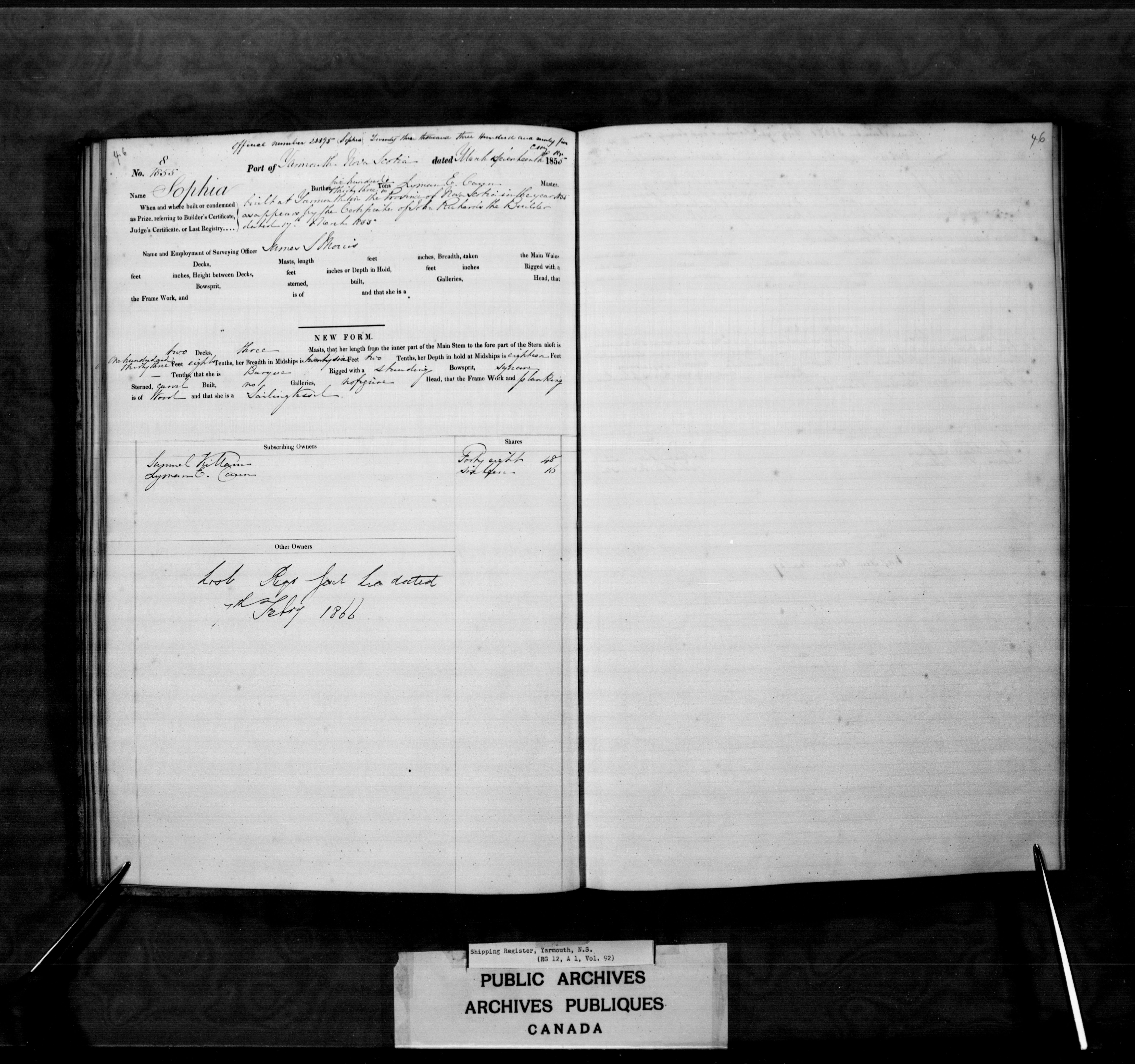 Yarmouth [Nova Scotia] Registrar of Shipping, 1840-1906 : C-2447