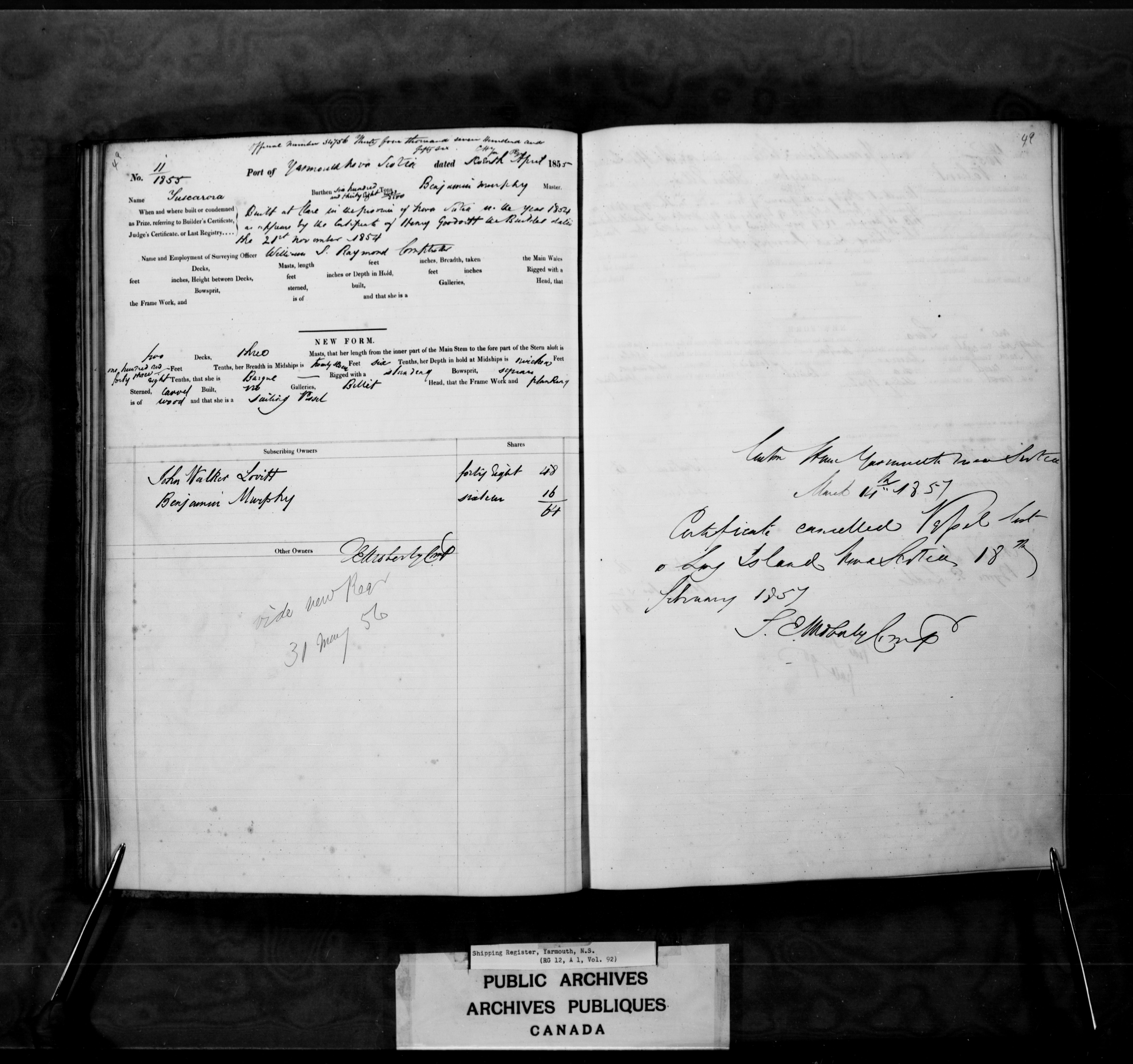 Yarmouth [Nova Scotia] Registrar of Shipping - 2447