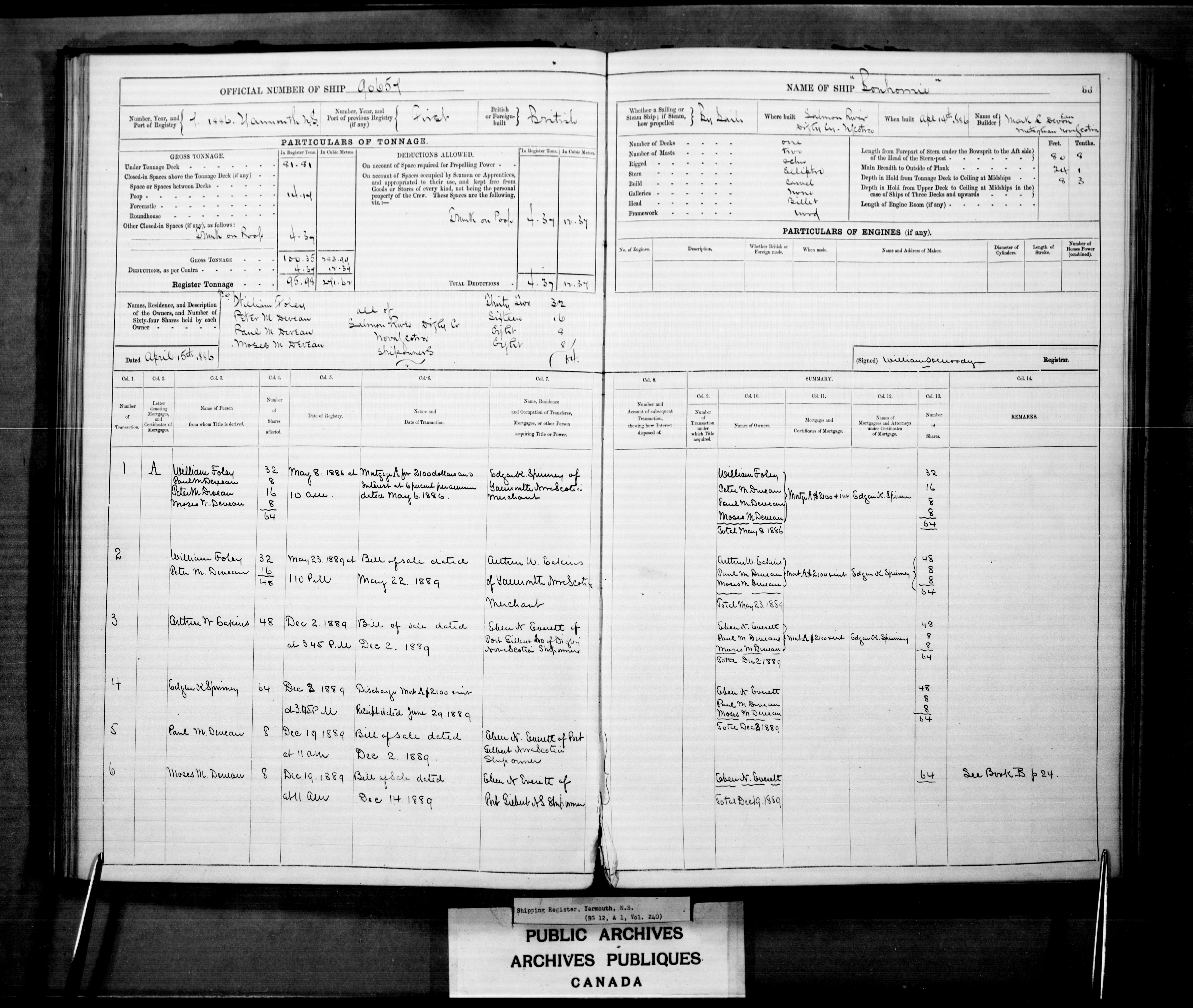 Yarmouth [Nova Scotia] Registrar of Shipping, 1840-1906 : C-2450