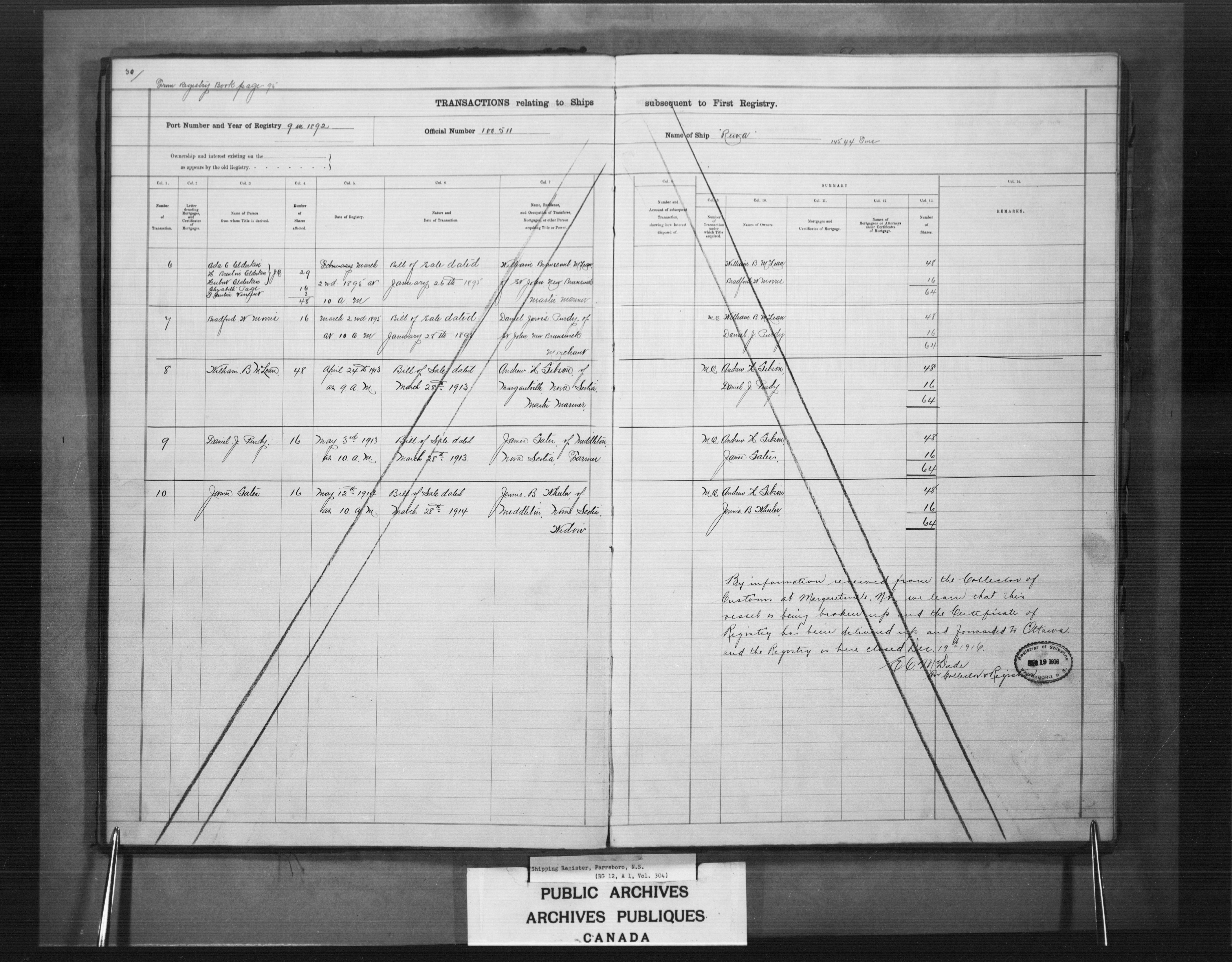Parrsboro [Nova Scotia] Registrar of Shipping - 2452