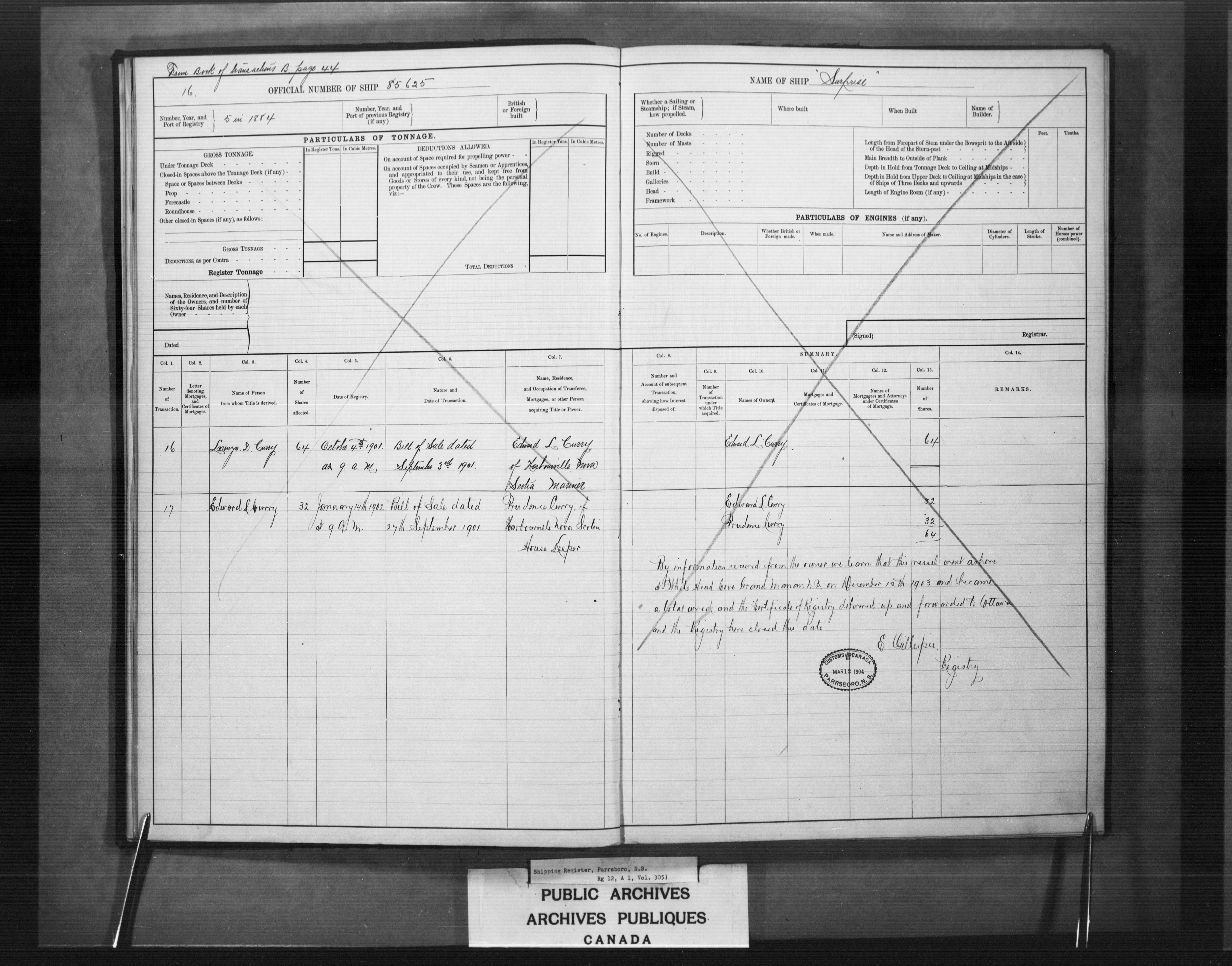 Parrsboro [Nova Scotia] Registrar of Shipping - 2452