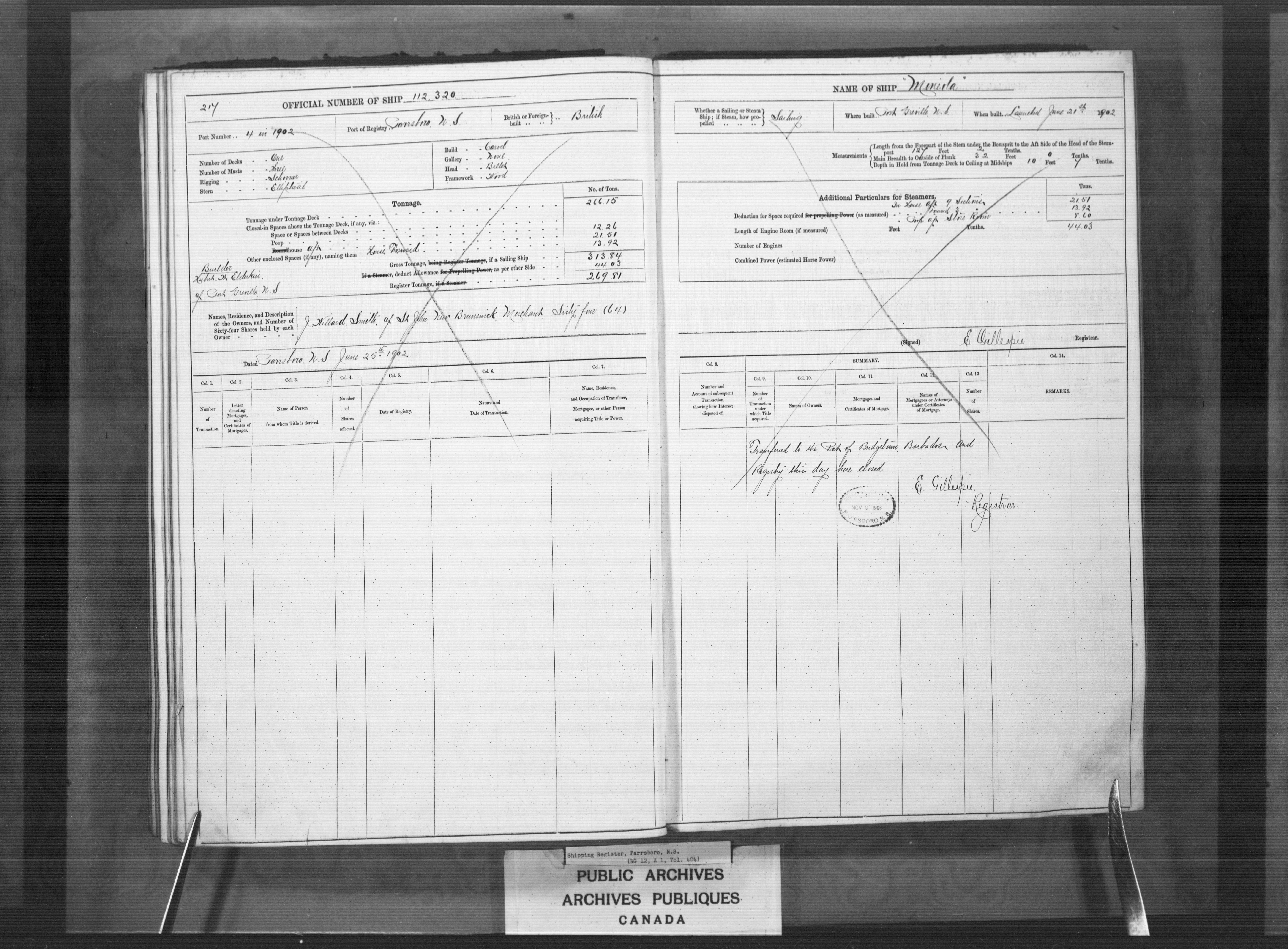 Parrsboro [Nova Scotia] Registrar of Shipping - 2453