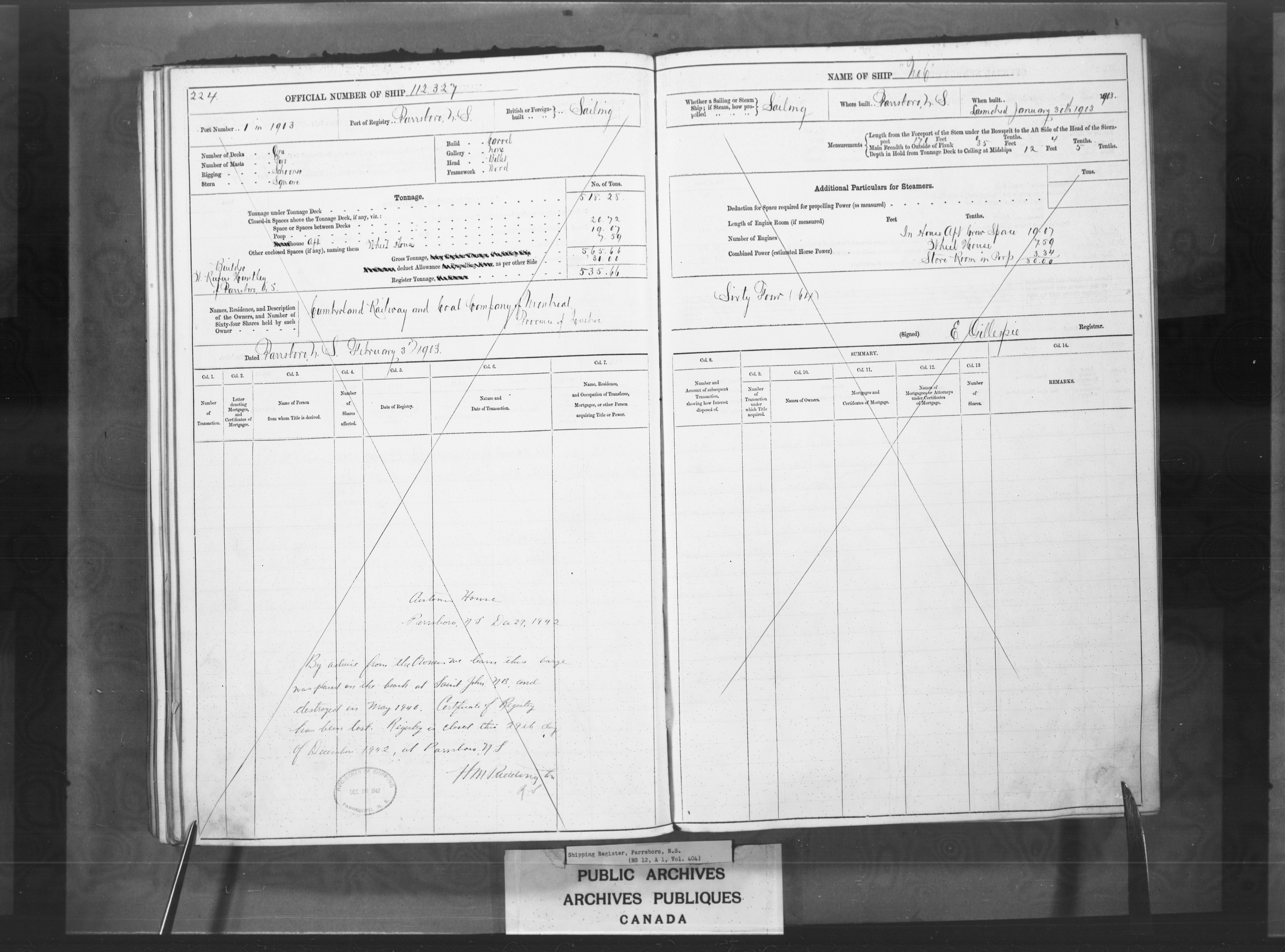 Parrsboro [Nova Scotia] Registrar of Shipping - 2453