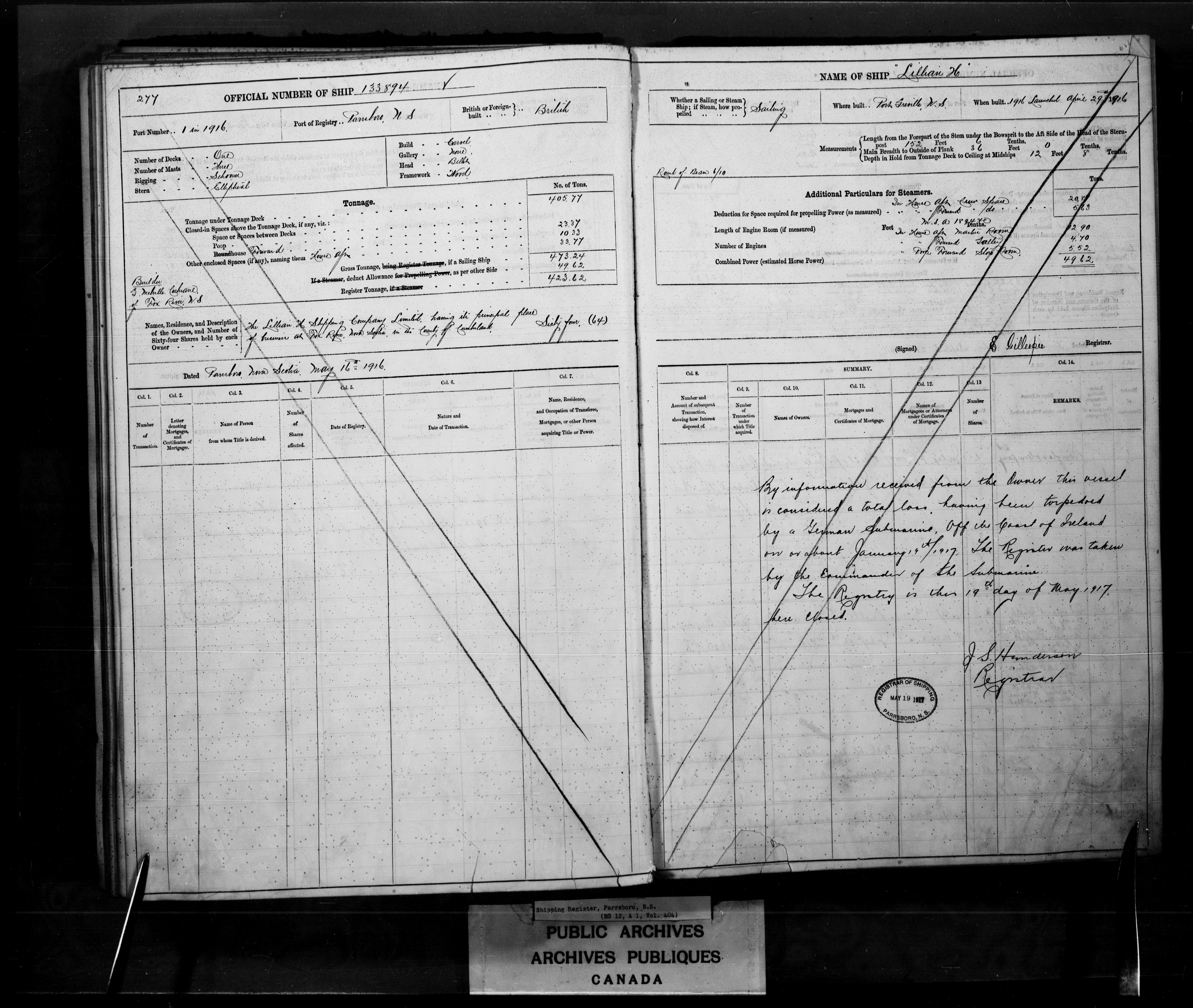 Parrsboro [Nova Scotia] Registrar of Shipping - 2454