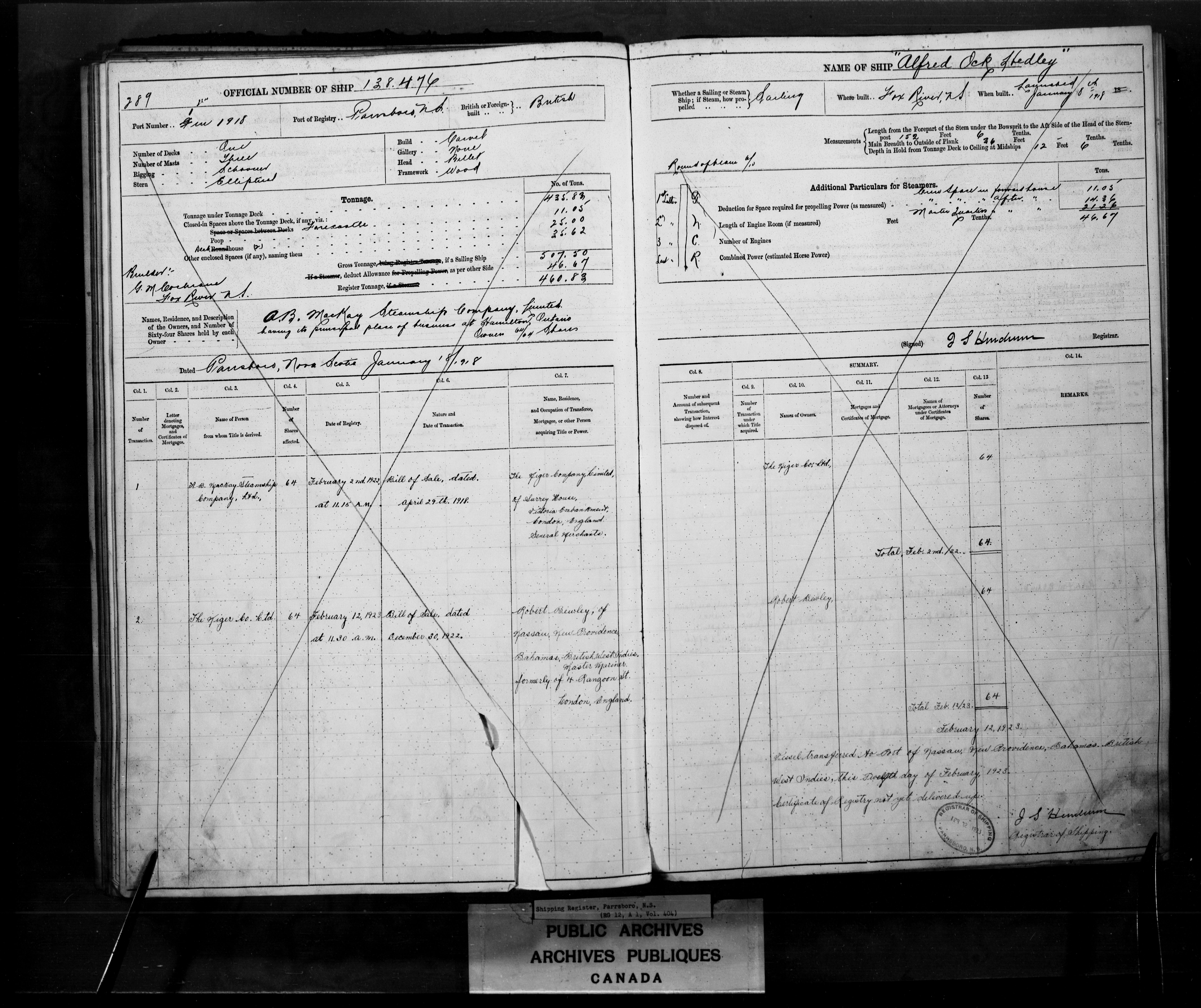 Parrsboro [Nova Scotia] Registrar of Shipping - 2454