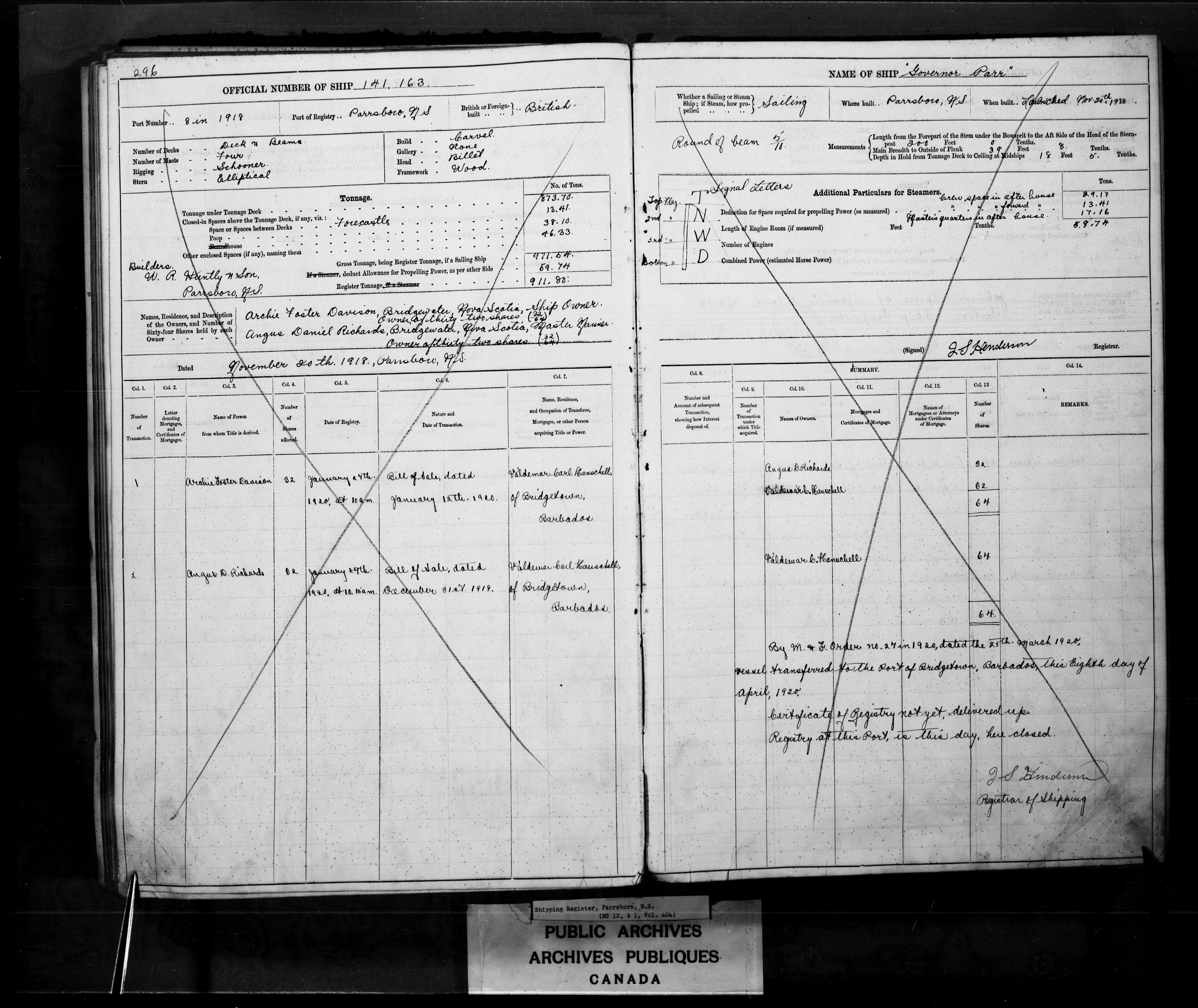 Parrsboro [Nova Scotia] Registrar of Shipping - 2454
