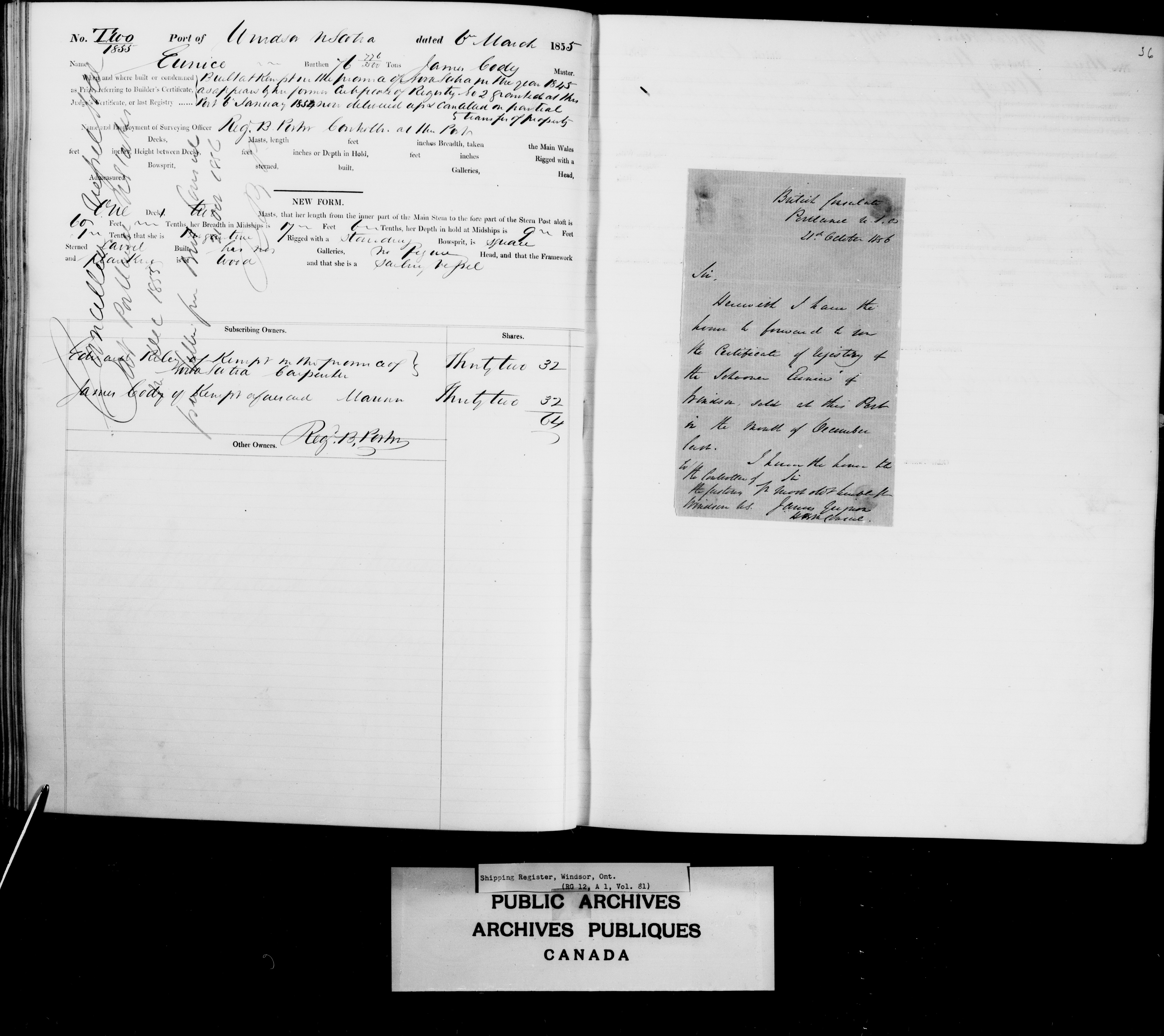 Windsor, Nova Scotia Registrar of Shipping - 2455