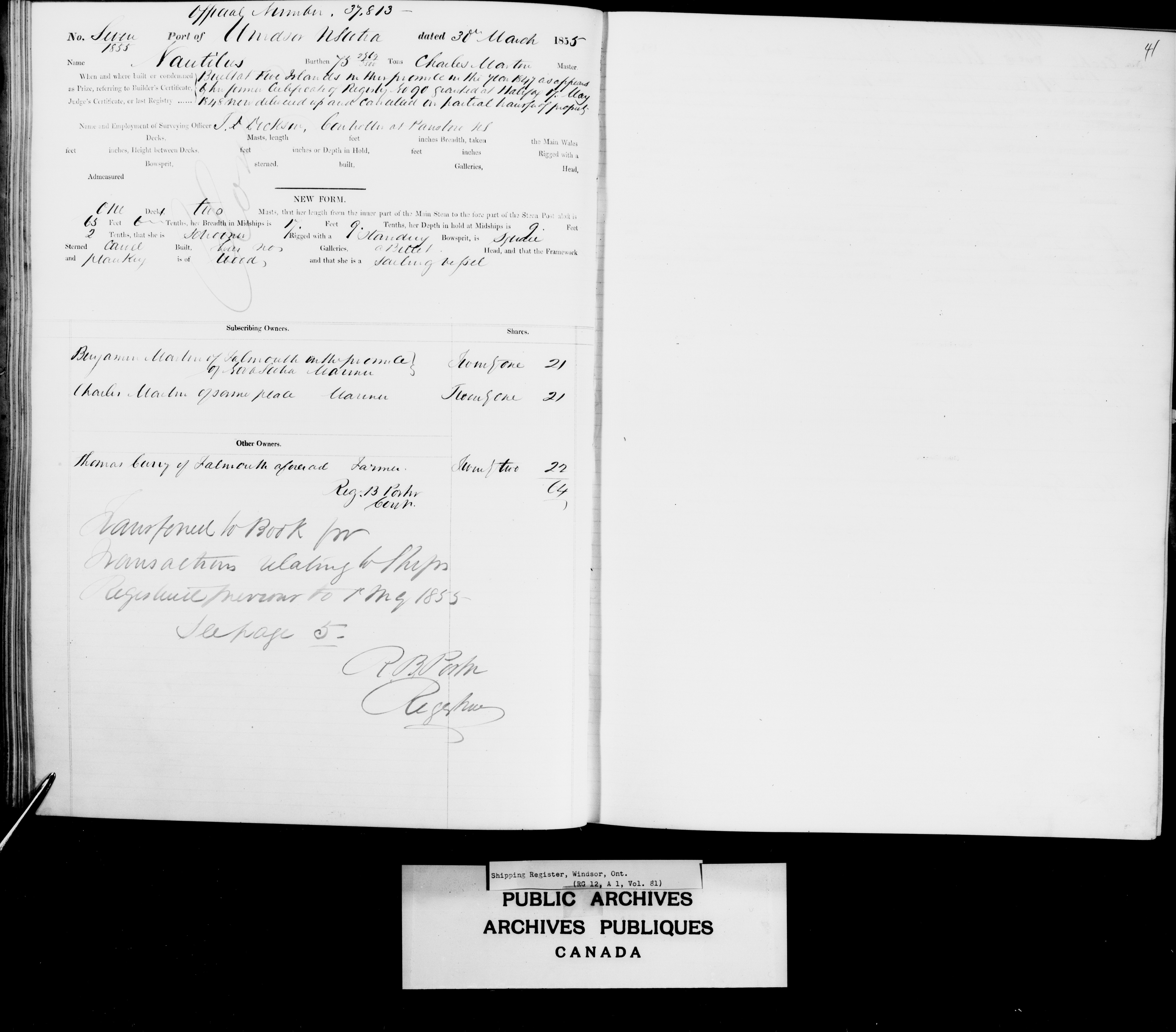 Windsor, Nova Scotia Registrar of Shipping - 2455